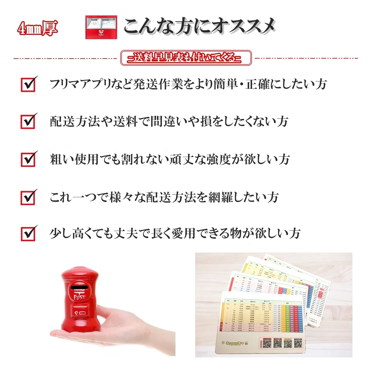 ・厚さのオーバーで返送されることも送料の無駄な支払いもこれ一つで無くなります