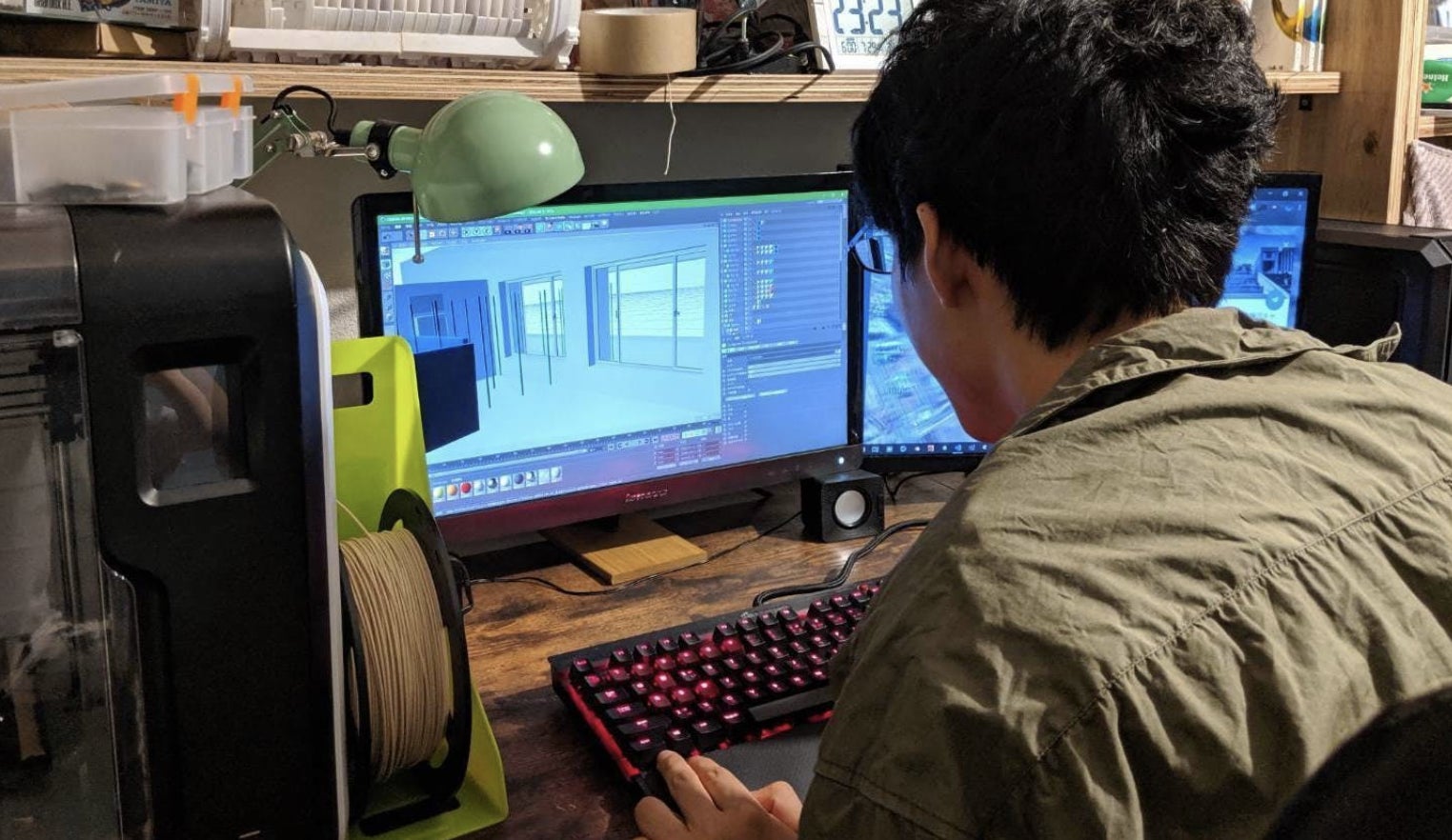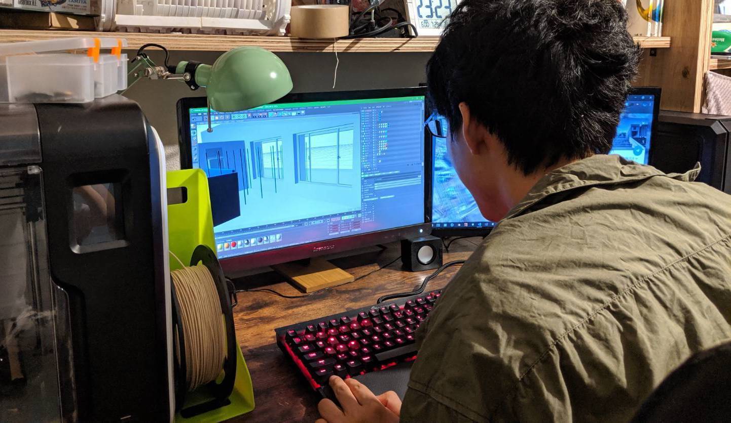 3DCGソフトを用いて使用教室をモデリング、施工のシミュレーションを行っている様子