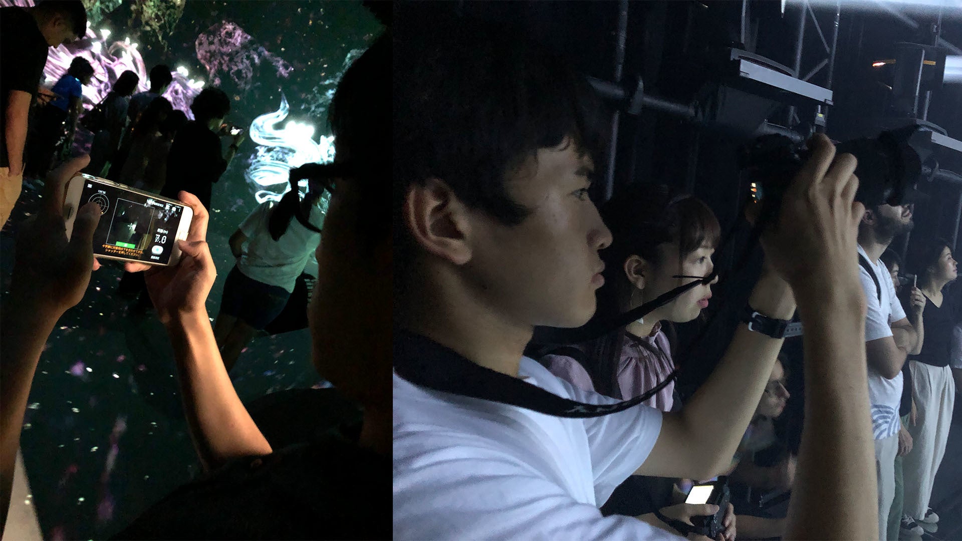 「teamLab Borderless」を二度にわたって見学し、表現方法等を学習する様子