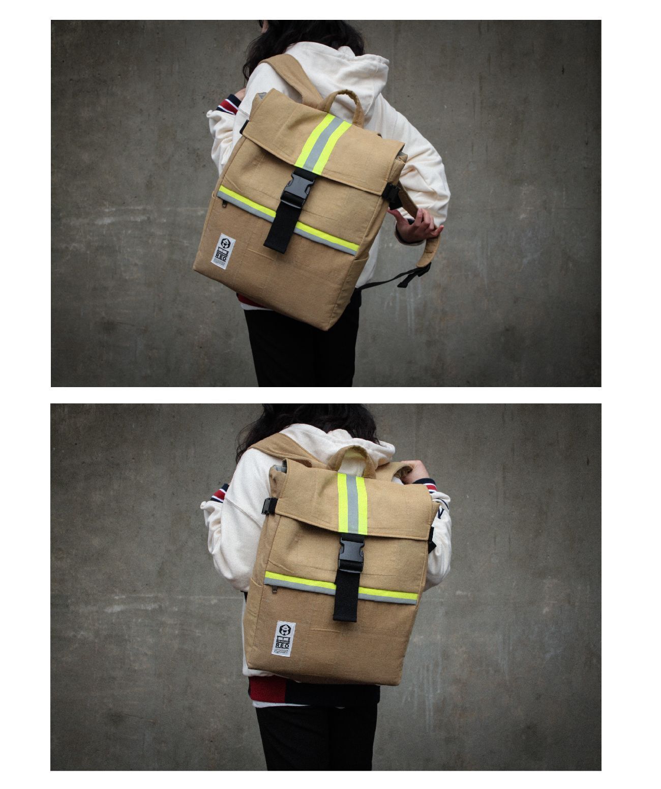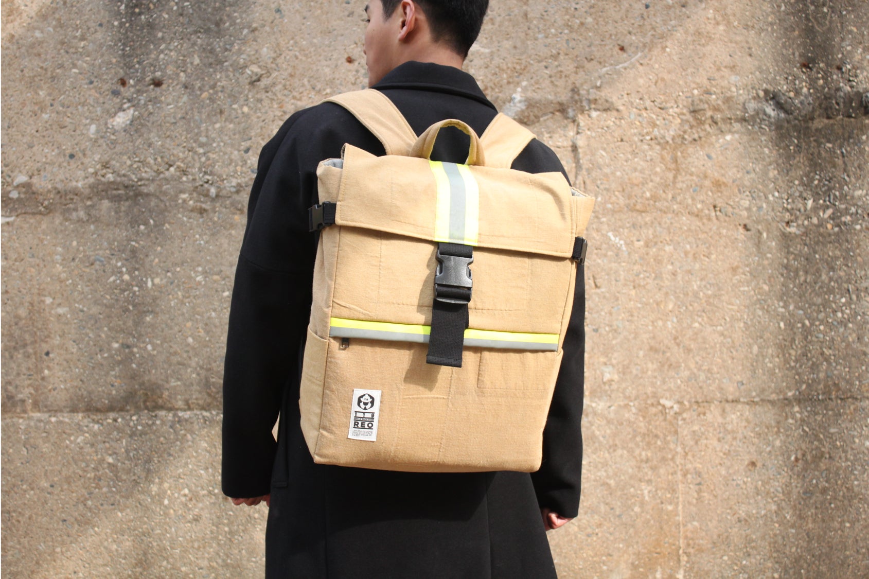 人命を救った服、消防服で作られたREO BAGは、防火服の機能をそのままバッグに取り入れています。