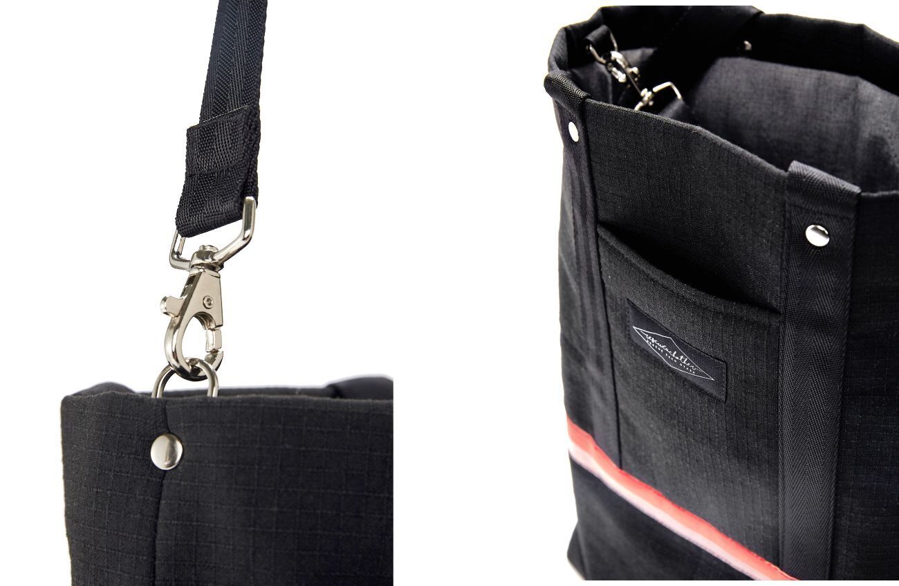 消防服ですので、一般的なバッグに使われる素材よりも丈夫で特別です。消防服の生地であるAramidは、400℃以上でも持ちこたえる超耐熱性スーパー繊維として生活防水はもちろん、容易に傷がつかない強い素材です。また、軽量で実用的な価値が優れています。