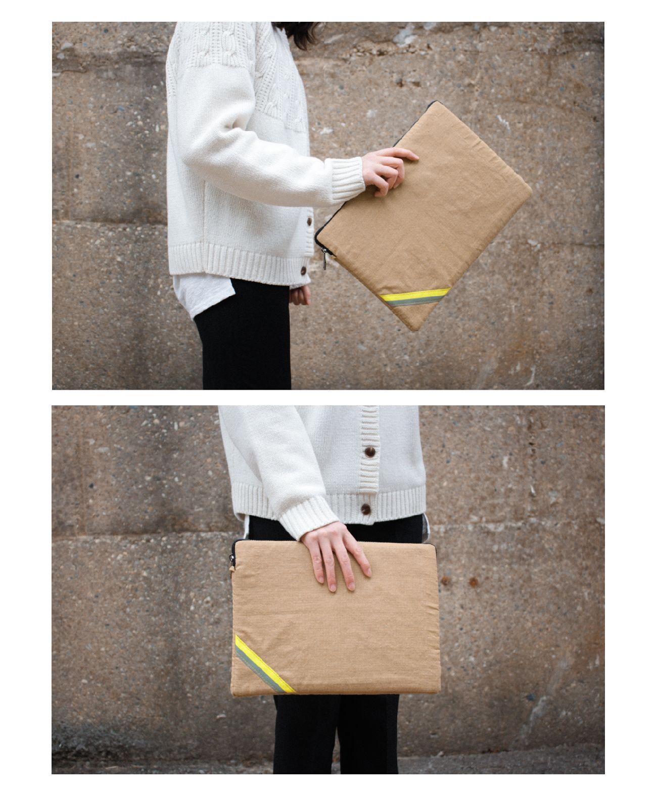 >> 119REOの製品は、実際の現場で消防士の方が実際に着用された消防服で作られています。使用年限が過ぎた消防服の破損程度がひどい部分は廃棄し、新しい活用が可能な生地を分離する。そして特殊洗浄をして一般の製品として販売できるものを製作しようと努力しています。しかし、多少の使用感を製品に感じてしまうことがあります。制作の過程をあらかじめ考慮いただければと存じます。また、これらによる交換や返金は不可であることを事前にご案内いたします。