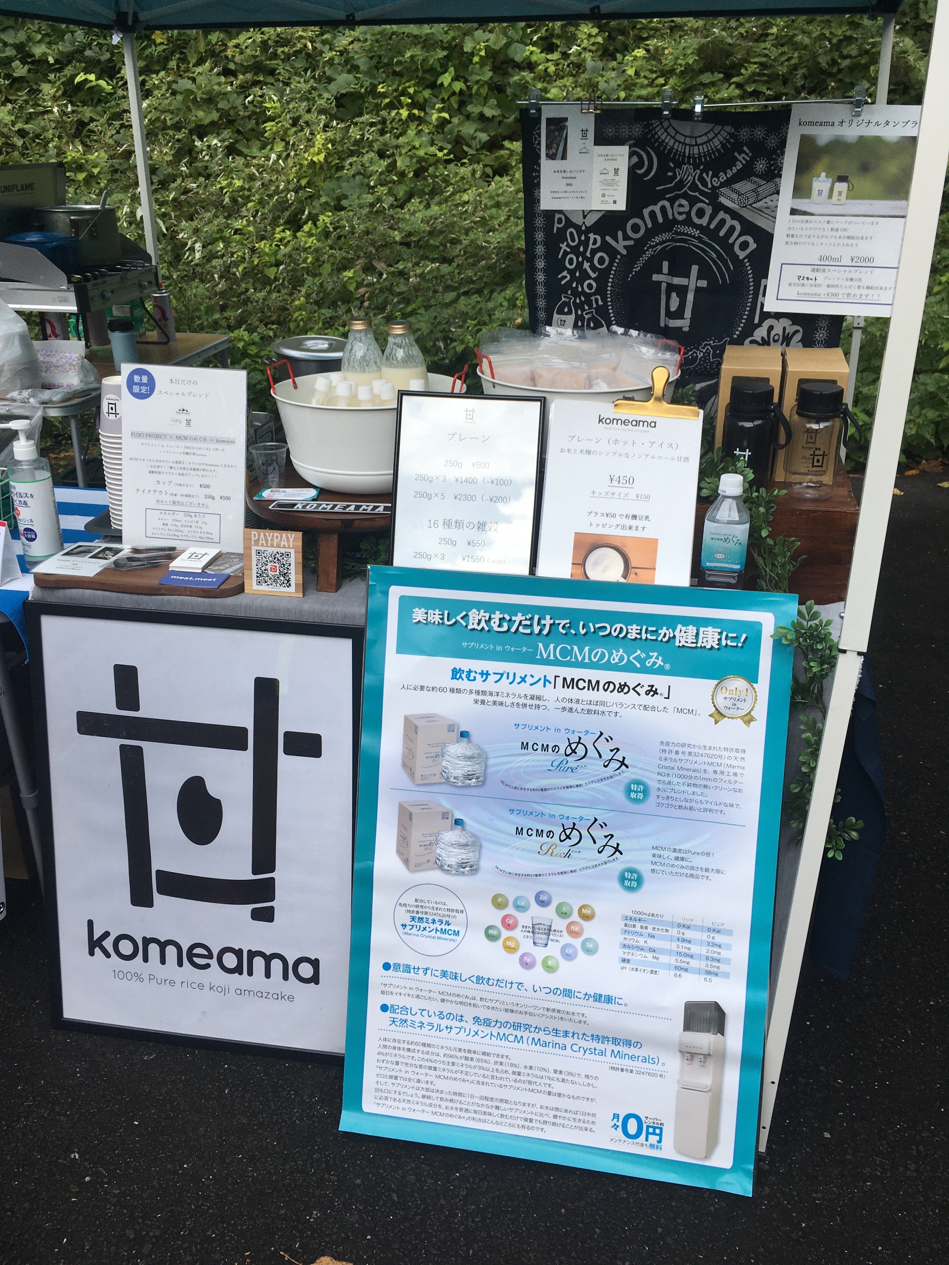 今回は、米麹を使い、加熱処理をしていない生甘酒「Komeama」とコラボしました。サプリメント in ウォーター MCMのめぐみで作ったスペシャル甘酒を限定販売!
