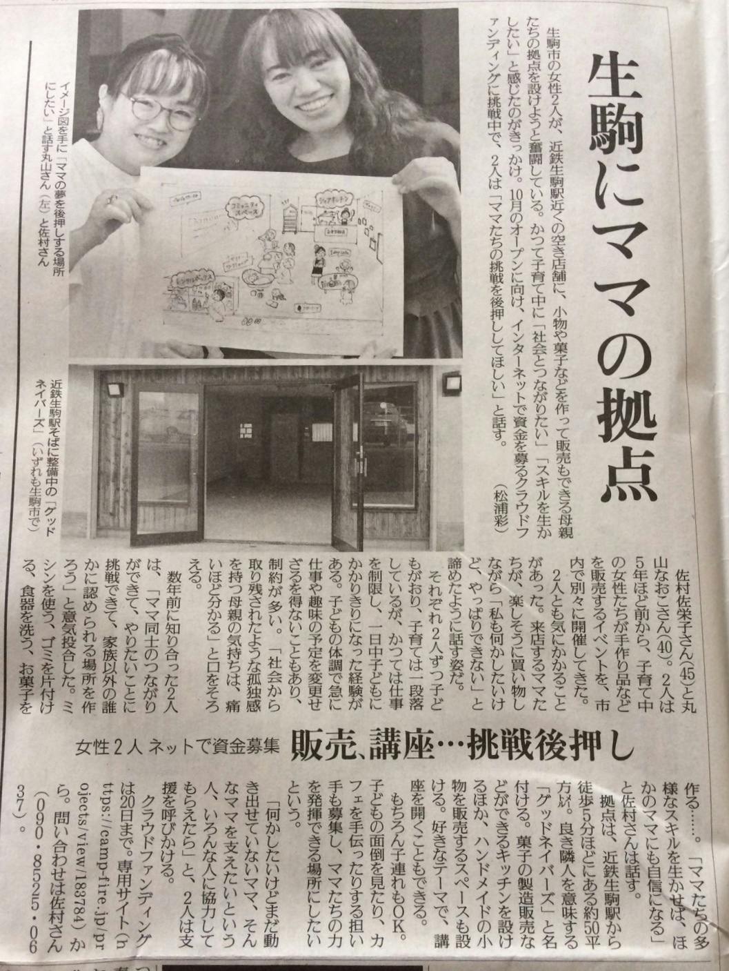 本日の読売新聞奈良版朝刊に、グッドネイバーズの活動が掲載されています。