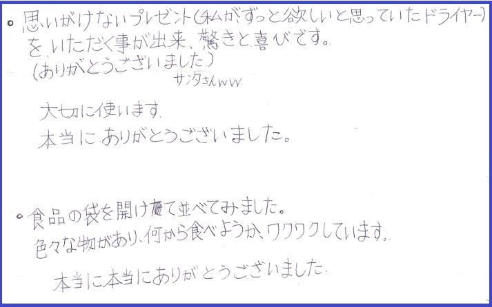 プレゼントを貰った子どもたちがどの様に嬉しかったのか?