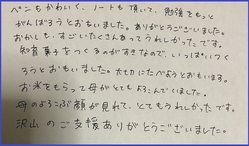 早速、子どもたちから「ありがとう!」の声が届いています。