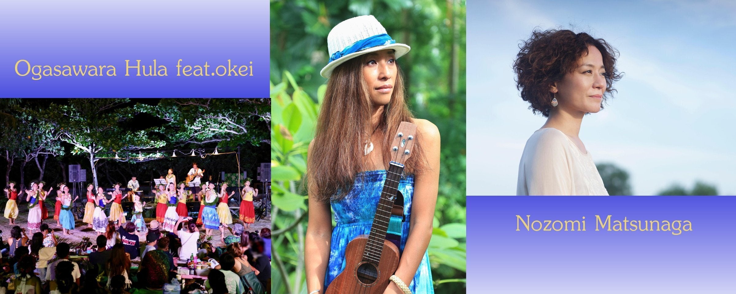 おはようございます!プロジェクト開始から29日目、154人、933,000円のご支援をいただきました。皆さんどうもありがとうございます!開催まであと3週間ちょっと。今回は小笠原の盆おどりマスター企画を一休みして、ライブステージについてのお知らせをいたします。小笠原の魅力を余すところなくお伝えする「小笠原DAY」、世界自然遺産登録の雄大な自然はもちろんですが、文化の面でもたくさん魅力、あるんですよ。小笠原のフラはすでに20年近い歴史があるそうですが、ハワイの古典的な曲や踊りはもちろん、小笠原古謡や、更には返還後から現在までに島にいた人が作って、歌われている歌を取り入れた、小笠原オリジナルなフラが特徴的です。毎年行われる小笠原フラの祭典「フラオハナ」では、小笠原には本当にいろんな歌があって、みんなに親しまれているんだなぁということを再認識します。今回は父島のフラチーム「ナ・プアナニ・オ・マクア」の皆さんと、「小笠原古謡の唄うたい」okeiさんとの素敵なコラボステージをお送りします。小笠原古謡をはじめ、小笠原フラの定番曲「大切なもの」をはじめとした島を題材としたオリジナルなど、愛用のウクレレと共に素晴らしい歌を全国で響かせているokeiさん。小笠原にやってくるクルーズ船内でのステージでは小笠原の魅力を楽しく聞かせてくれるトークも大好評。小笠原と本当に縁の深い歌い手さんです。おがさわら丸、ははじま丸の船内放送でもokeiさんの歌声に出会えますよ!okeiさんの歌声に乗せた小笠原フラ、お楽しみに!もう一組、こちらも小笠原ファンにはおなじみの方かと思います。1999年発表のCD「小笠原古謡集」が今も島で愛されているバンド「RING LINKS」。このバンドでボーカルを務めていたのが松永希さんです。その後もソロや数々のユニットで多くの音楽作品に関わり、またライブ活動をされています。先日川崎で行われた「小笠原文化祭」にも出演されていました。昨年は久しぶりに来島もされ、多くの島のファンやお友達から大歓迎を受けていらっしゃいましたね。今回はギター、クラリネットとの3ピースで、そのパワフルで、そして優しい歌声をお楽しみください。このプロジェクトも終了まであと20日を切りました。皆さんのご支援、本当に力になっています。イベントの成功に向けて、私たちもフルパワーで頑張ります!引き続き、よろしくお願いします。