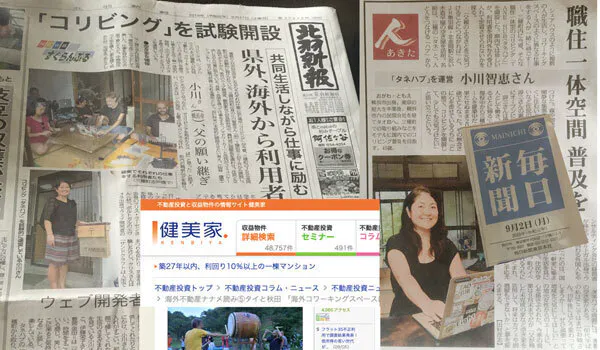 <4>日本中の空き家問題を抱える地域で大きな力となる田舎コリビングを先駆け的存在として三種町から発信していくこと。情報を発信することも私たちの大切な役目だと思っています。今回、地元新聞社の取材や東京のイベントでTANEHUBを紹介する機会がありましたが、周りの方のご理解・ご協力があってこそ実現できたと思っています。
