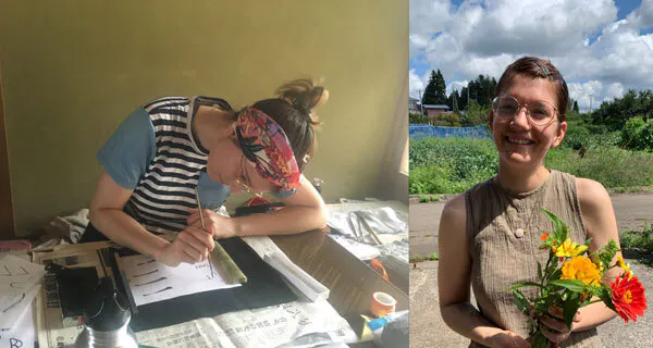 TANEHUB滞在者であるスイス人アーティスト、ジャクリンが書道道具を使い描いてくれたイラストのオリジナルグッズとMOEからの感謝の気持ちの商品で、みなさまのサポートへのお礼をご用意させていただきました。