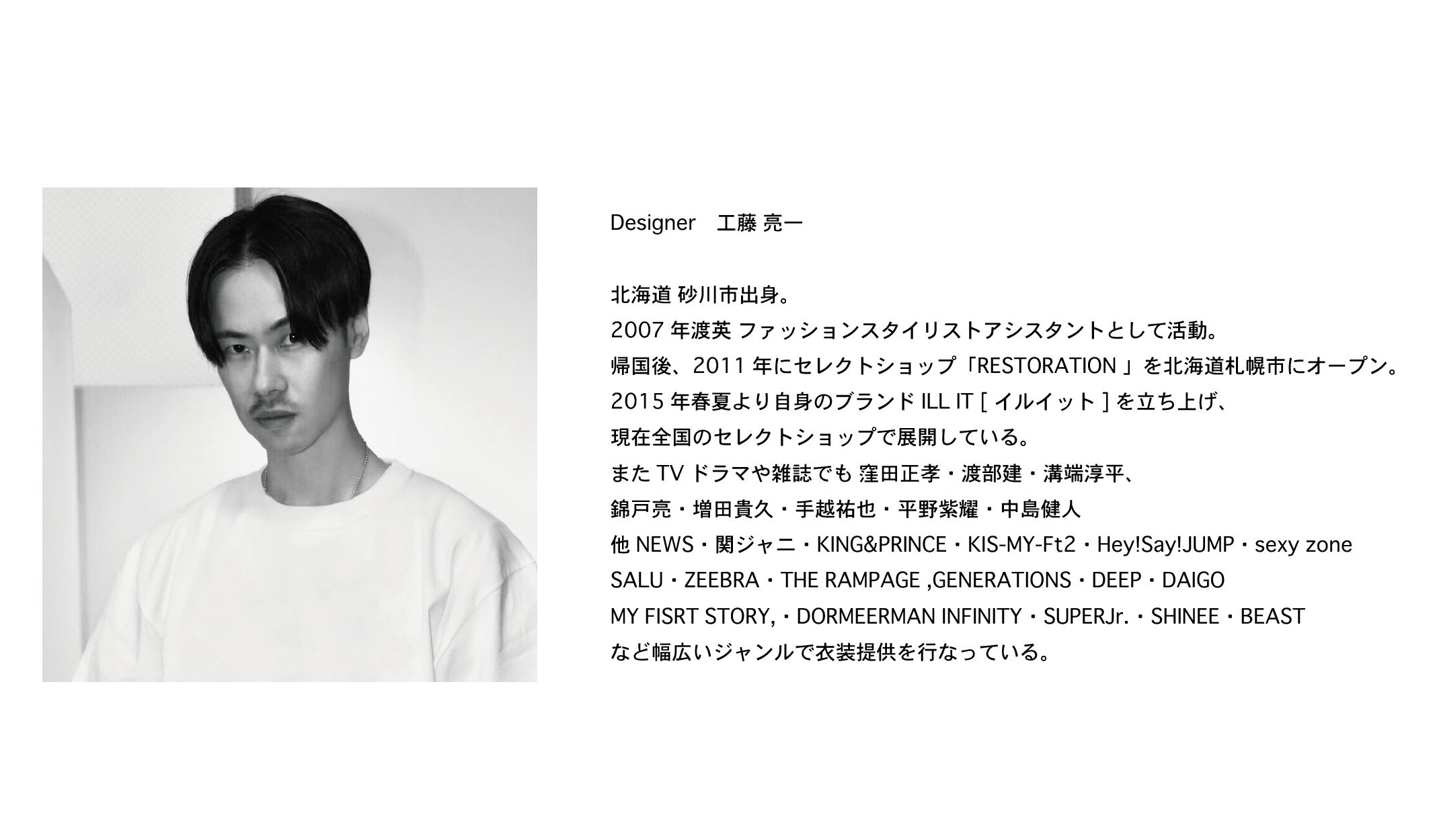 僕自身、有名ブランドや大手アパレルメーカーで勤務した経歴はありませんが、僕の服に袖を通して感動してくれている方は少なからずいて、同じように輝かしい経歴がなくてもコレクションを発表する場所があるということを証明し、ファッションに夢を次世代に抱いてもらえる一つのきっかけになれたらと思っております。