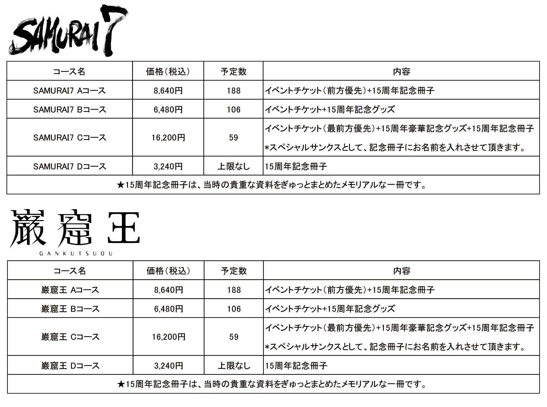 *15周年記念冊子のみをご購入の方には、イベント開催以降発送させていただきます。