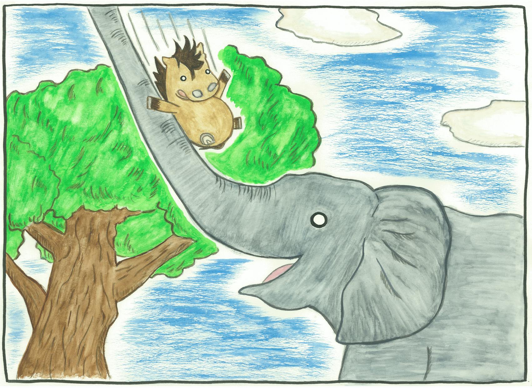 マルコくんがライオンから逃げてきた先で出会う鼻が長すぎるゾウ