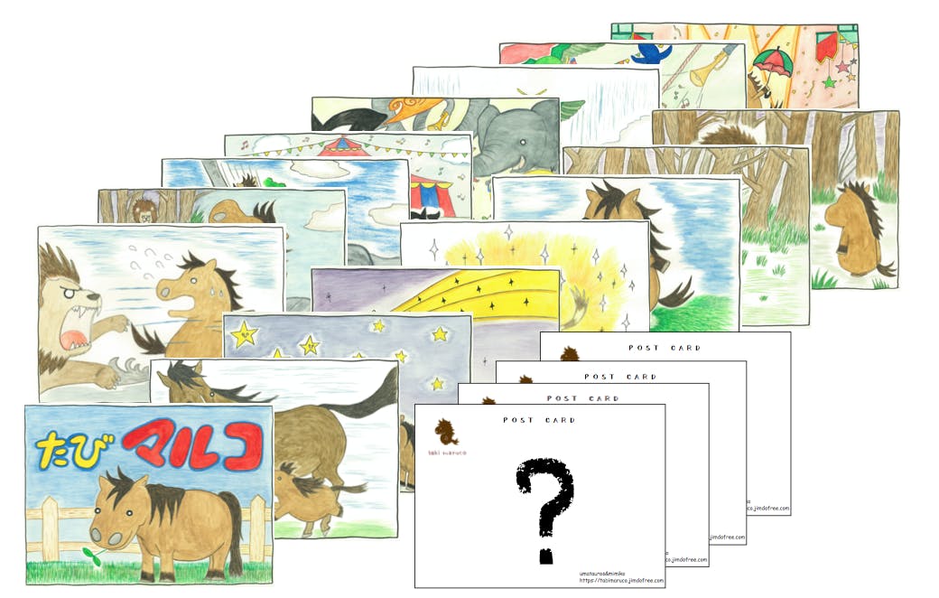 絵本『たびマルコ』の絵のポストカードセット(全20枚)です!
