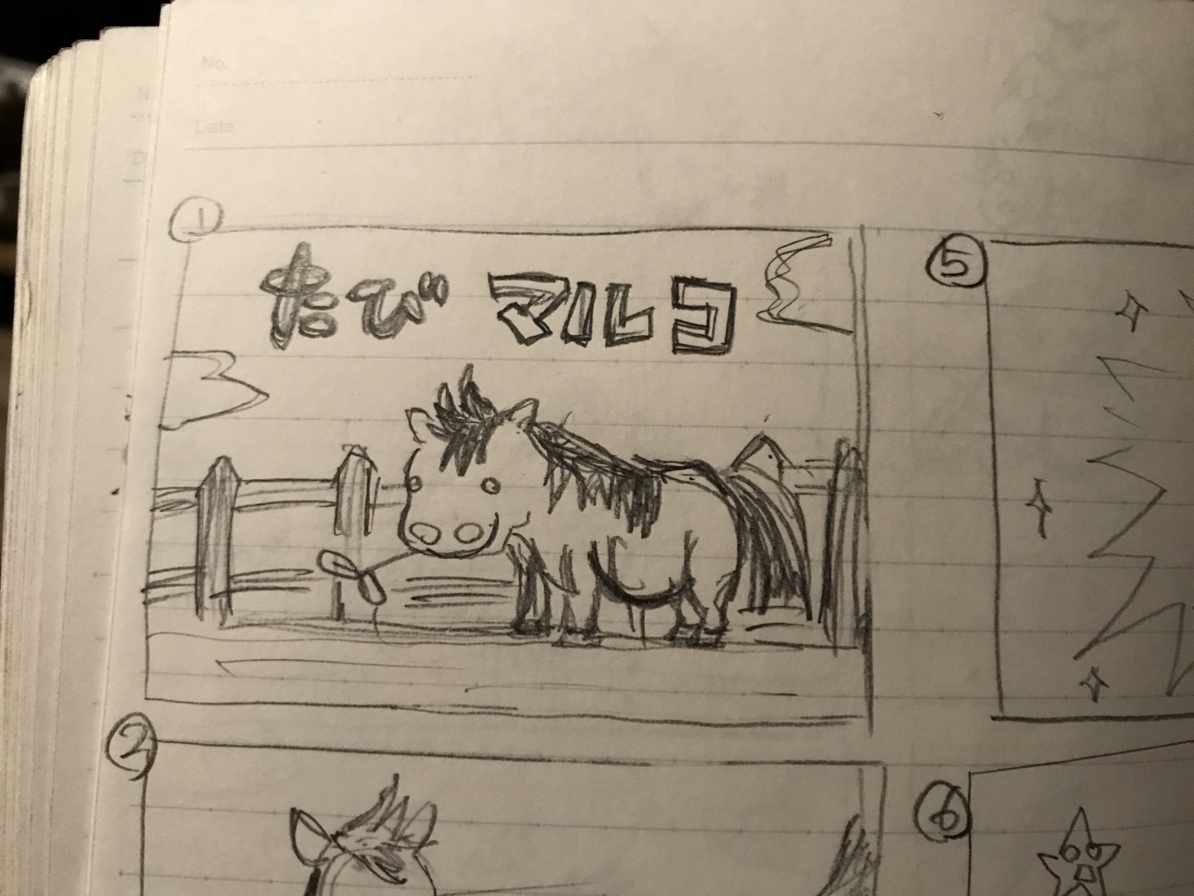 こんにちは!このプロジェクトを見ていただきありがとうございます!そして、ご支援していただいた方、ありがとうございます!【tabi maruco】大橋です!こちらの活動報告という場所にて、紙芝居『たびマルコ』ができて行く過程を書いていこうと思います!まず、物語を作ったこともないので、どこから取り掛かればよいものか、わかりませんでした。なので、とりあえず、お話の大まかな道筋を考えて、殴り書きで文字を書きました。そしてそこに絵を足していきました。これを最初のとっかかりとして、いろいろと変えていきました。文章はどこで切って、どこまでこのページにするのかを決めていきます。そしてそれが決まって、一枚一枚のイメージの絵を一通り描きました!こんな感じです。これができたら、いざ!作画!!ということなのですが、実をいうと、この場所にこぎつけるまでに、なんと、倍以上の時間がかかっておりました。それは何かと言いますと・・・長くなりそうなので、これは次回に!応援よろしくお願いいたします!!