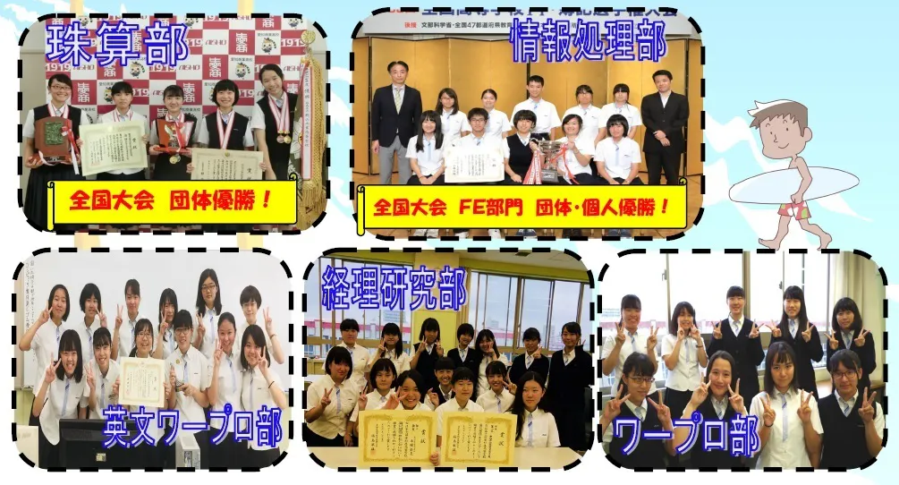 ・経理研究部 ・珠算部 ・情報処理部 ・フェンシング部 ・バトントワリング部など