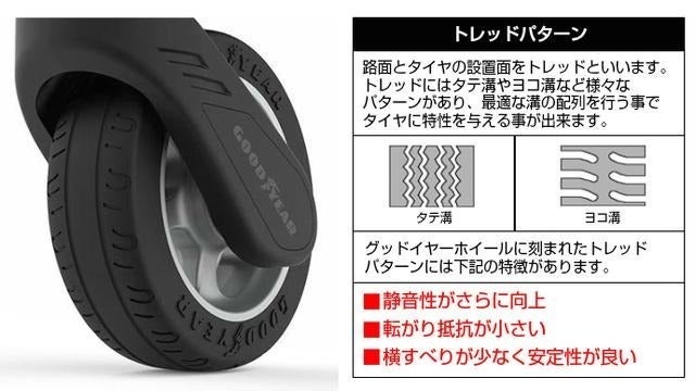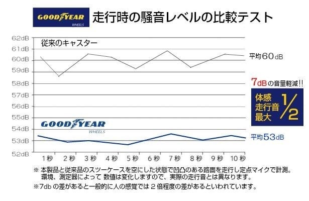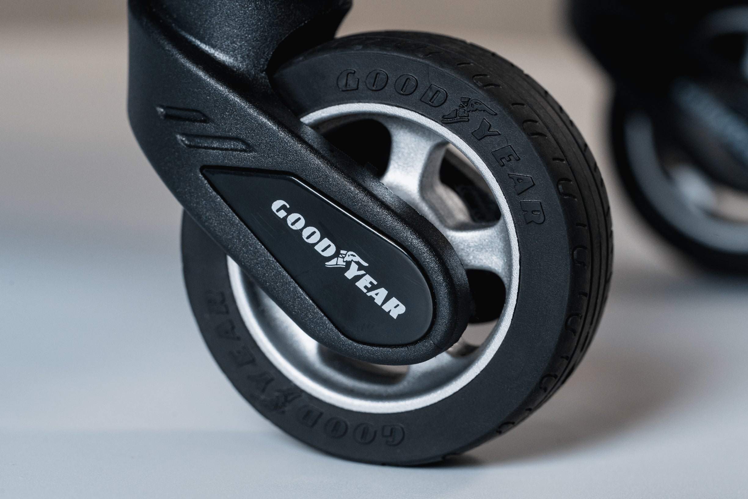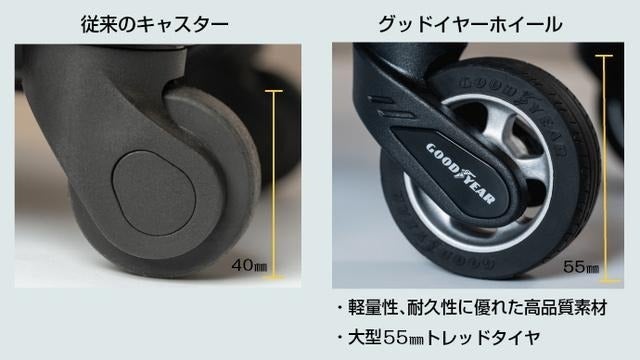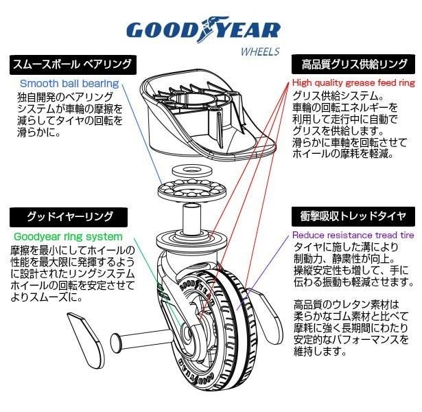 グッドイヤーホイールには独自開発のテクノロジーと高品質の素材が使用されており、従来のキャスターよりもロードノイズを軽減することができます。