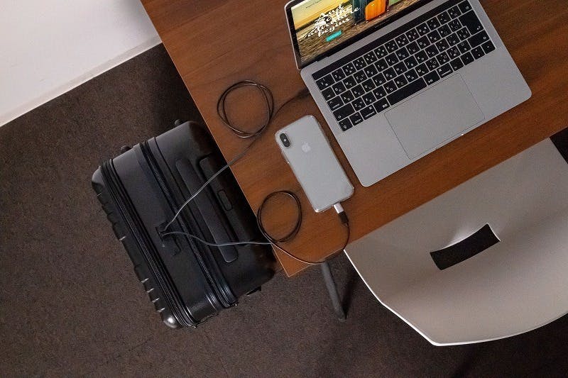 USBポートが2口あるので待ち時間に作業しながらスマホとノートパソコンをダブル充電したり、2人でシェアしたりも可能です。