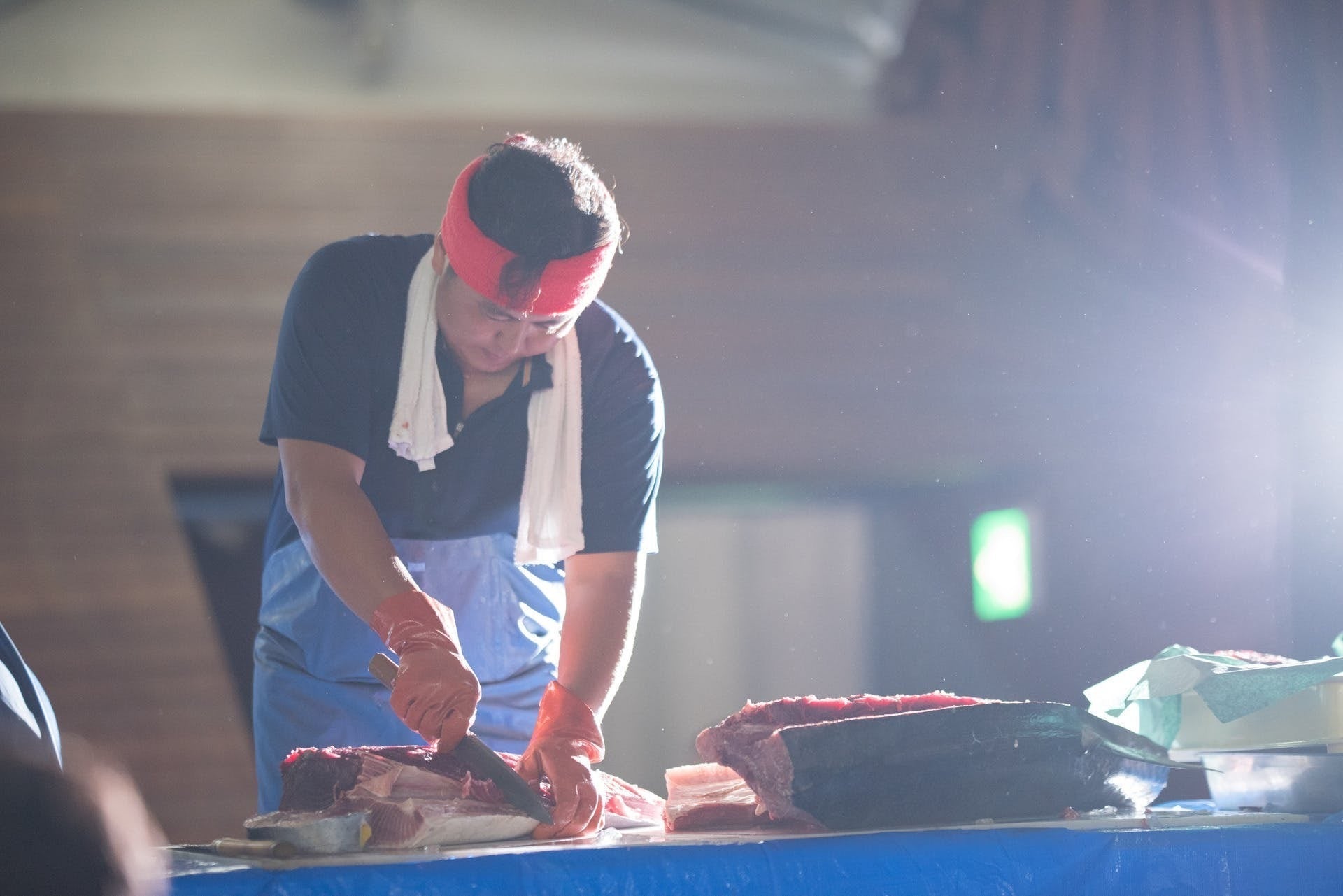 迫力満点の「マグロの解体ショー」、