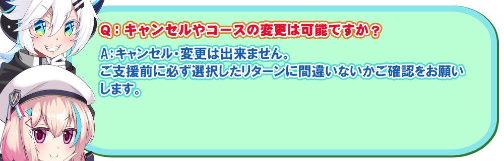 今回もバーチャルとリアルの垣根を越えて楽しんでいただける様々なプランをご用意しましたので、下記のリストと、詳細はリターンをご覧ください!