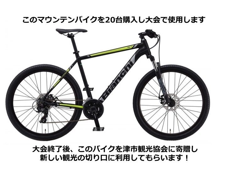 開催場所がある三重県津市の観光協会にマウンテンバイクの寄贈の相談をさせてもらったところ、大変ありがたい申し入れであり自治体としてもできるだけ大会開催のバックアップとバイクの有効利用で地域創生活動としての観光に力を入れていく一つの手段にしたい、と言われました。