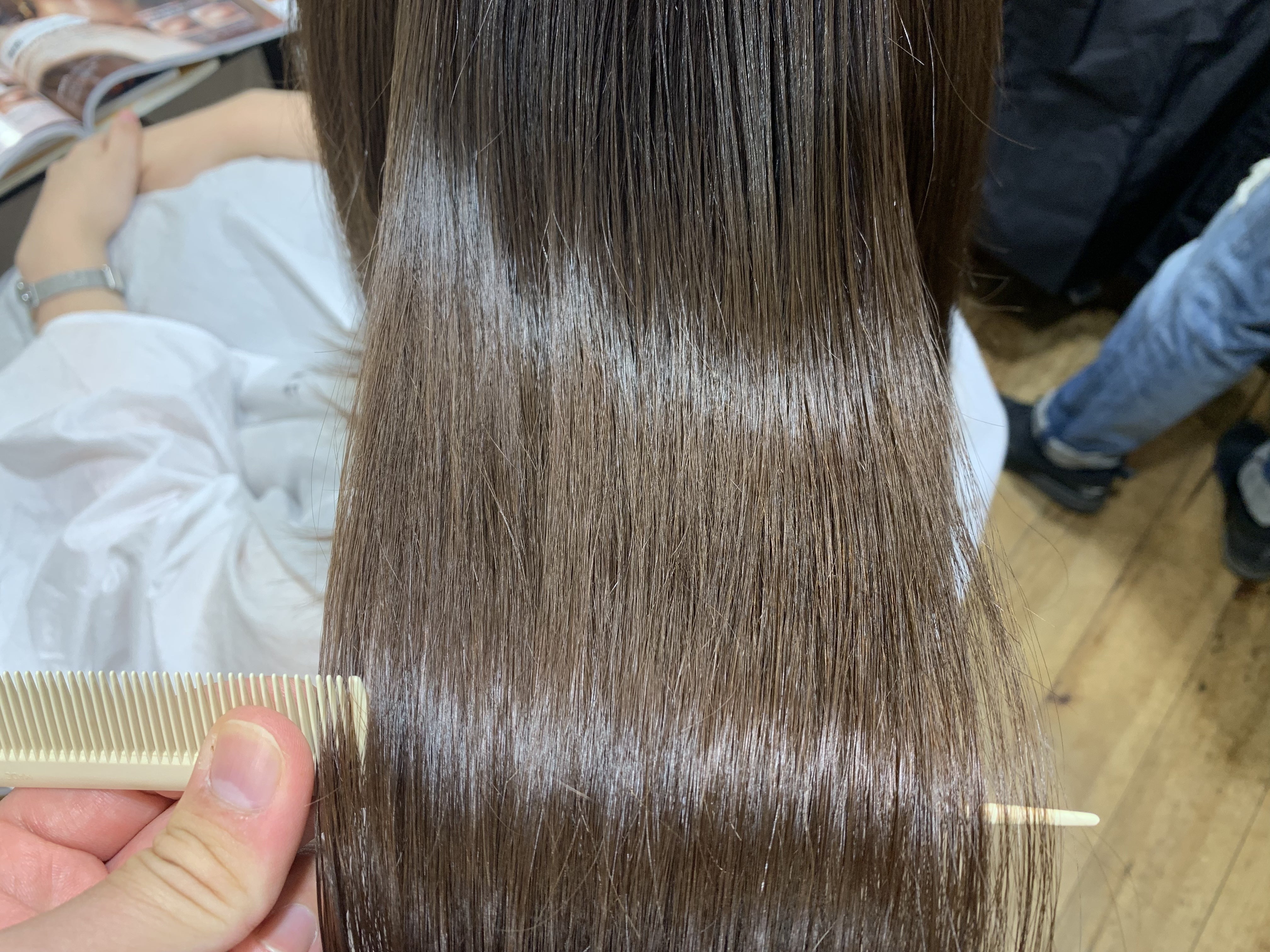ツヤやパサつきが少なくなったのは、一目瞭然かと思います。指通りの良さは伝われば幸いです。