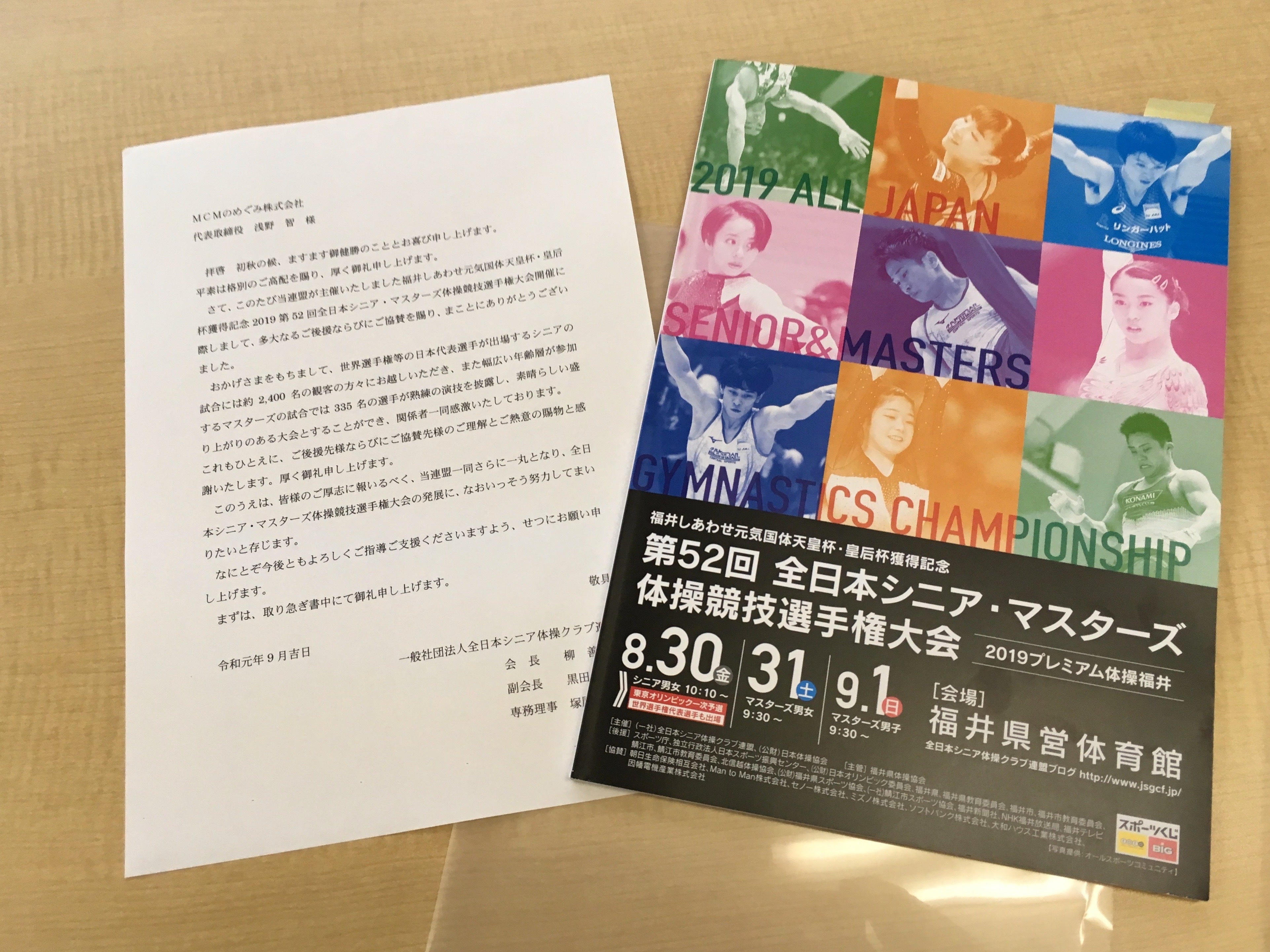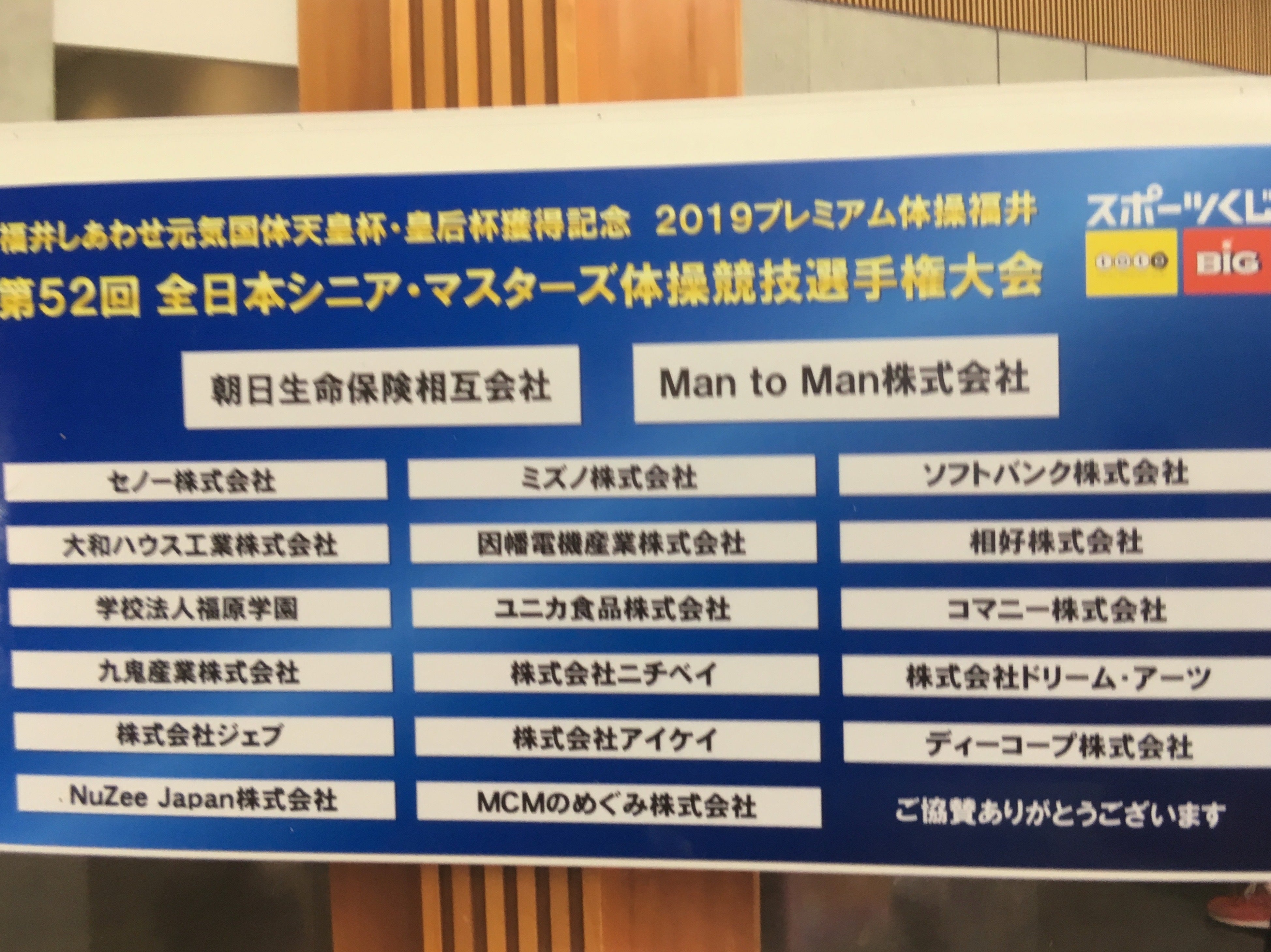 2019プレミアム体操福井(第52回全日本シニア・マスターズ体操競技選手権大会)が無事に終了。