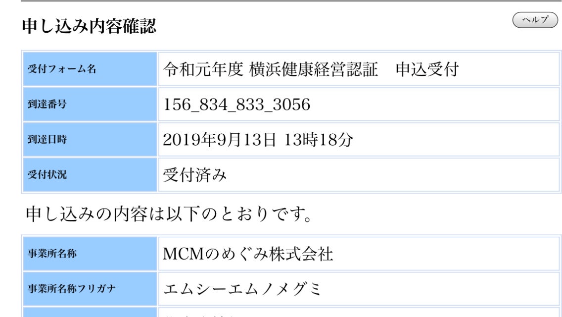 2019年9月13日(金)横浜健康経営に応募完了しました。