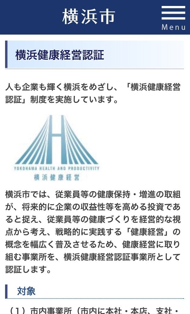 経済産業省が進めている健康経営優良法人認定とは別に、横浜市では独自に横浜市健康経営認証制度が有ります。
