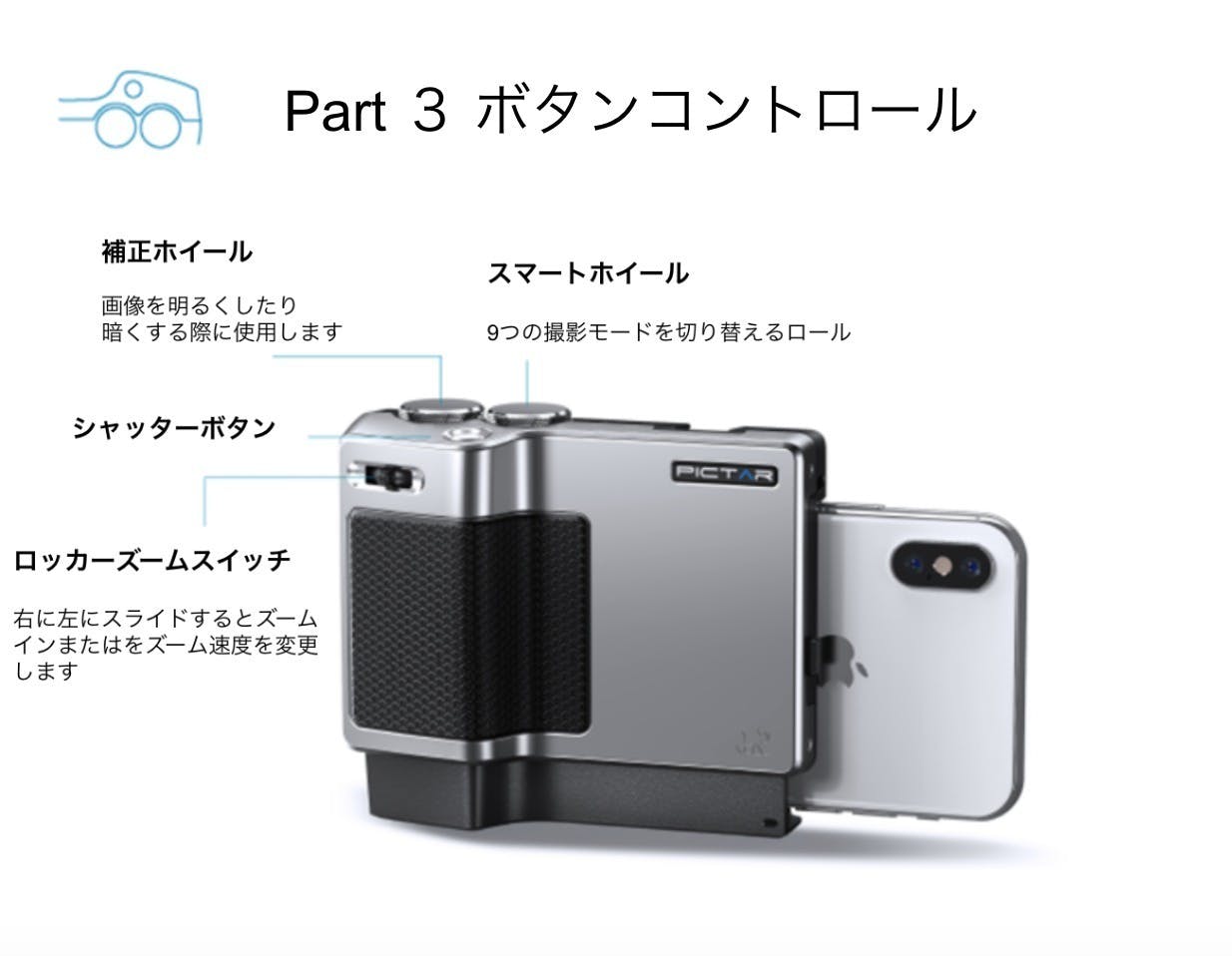 Pictar Proは、スマートフォンを本物のカメラのように見せるだけでなく、何十もの機能やコントロールを追加することができます。Pictar Proは、スマートフォンの性能とカメラの使いにくさのギャップを、幅広い物理的制御とソフトウェア機能で解消します。