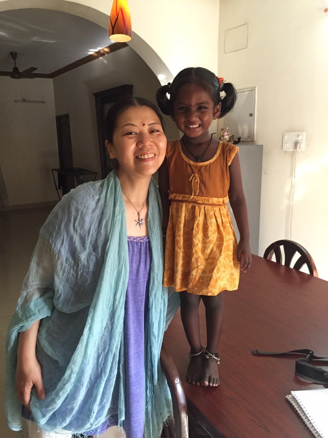 いつも苦しい立場の人や弱い立場の人たちの気持ちや想いに寄り添った行動ができる素晴らしい先生です。麻希子さん恵理華さんとともに震災ボランティアとして現地へ出向き、ヨガを通じたサポートを行なってきました。現在は都内を中心にヨガやチャンティングを指導しています。個々を大切に、ヨーガを必要としている人がより良い方向に向かっていけるよう献身的に活動を続けています。今も継続してヨガを学びにインドに渡印し、インドではTKVデシカチャー先生の妻であるメナカ・デシカチャー先生に従事し学びを深めています。