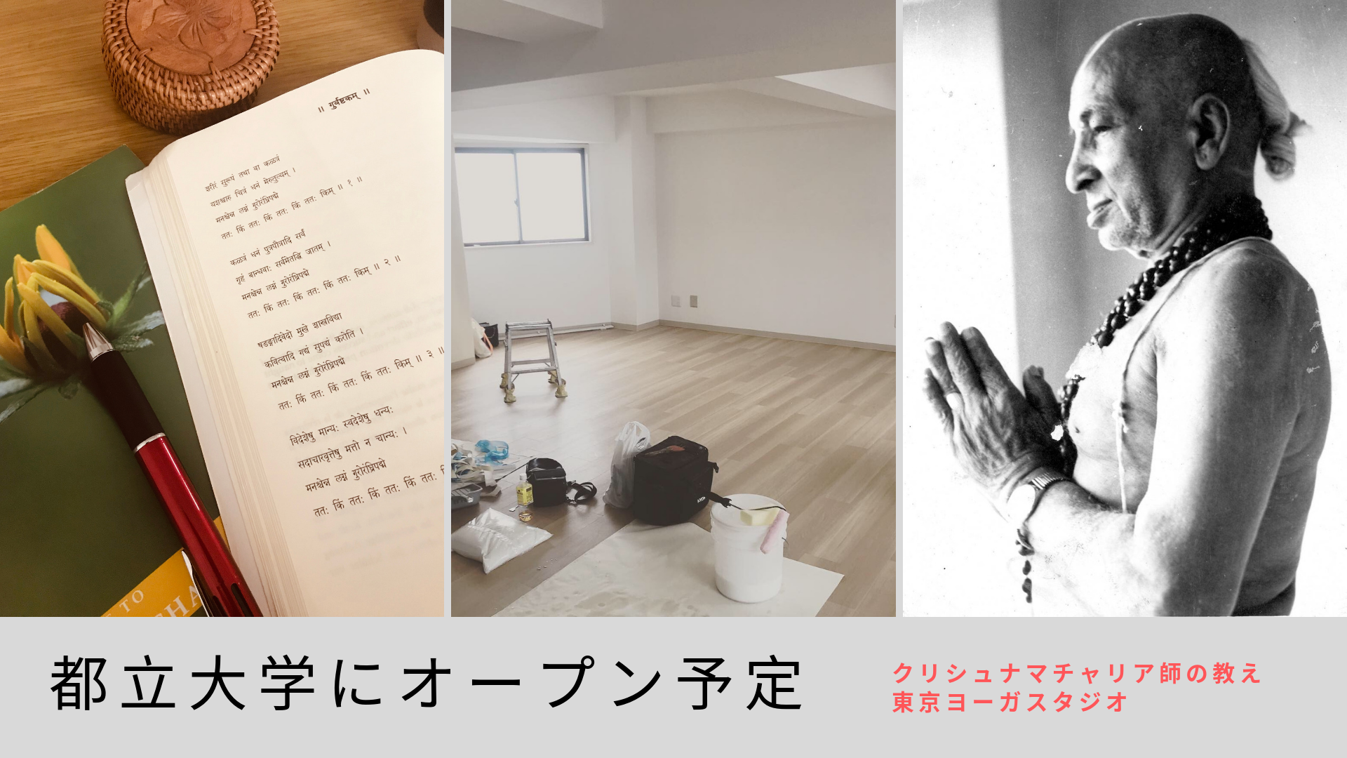 東京スタジオとしての活動はこれからがスタートとなります。都立大に場所を構えることで、バラバラに活動していた先生たちが互いに切磋琢磨し、学びを深めながら、地域や社会の人々にヨーガを届けられるような場所にしていきたいと考えています。