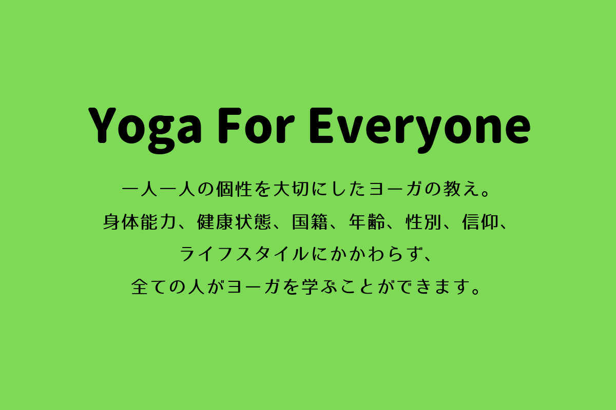 幼児から、おじいちゃん、おばあちゃん、誰もがヨーガを行うことができるのです。健康状態や身体能力、国籍、年齢、性別、信仰、ライフスタイルを問わず、それぞれの持っている力を出せるよう、また前向きに生きていけるよう「ヨーガ」を通じ、個々のサポートのできる場所を作り上げていきたいと思っています。
