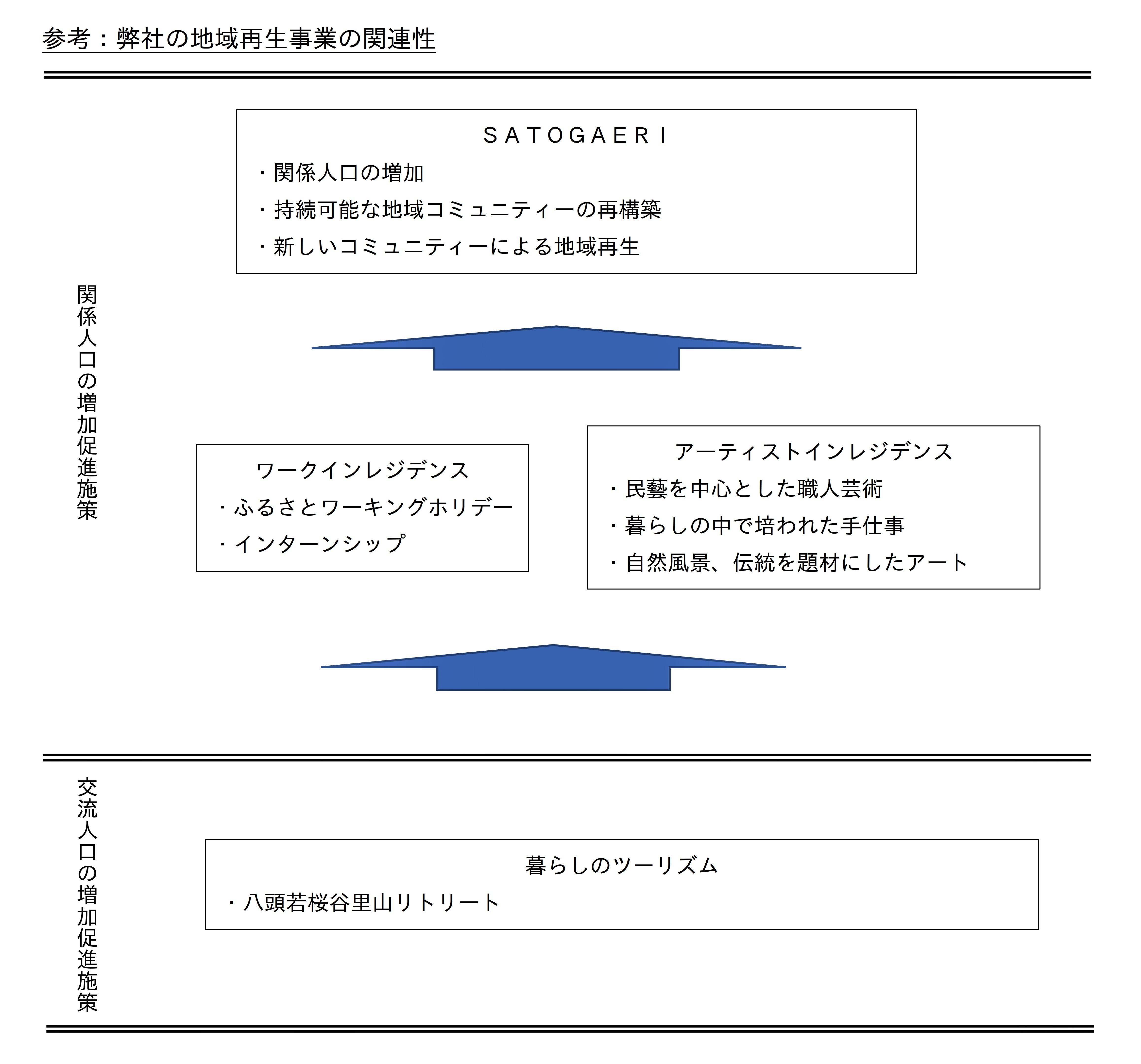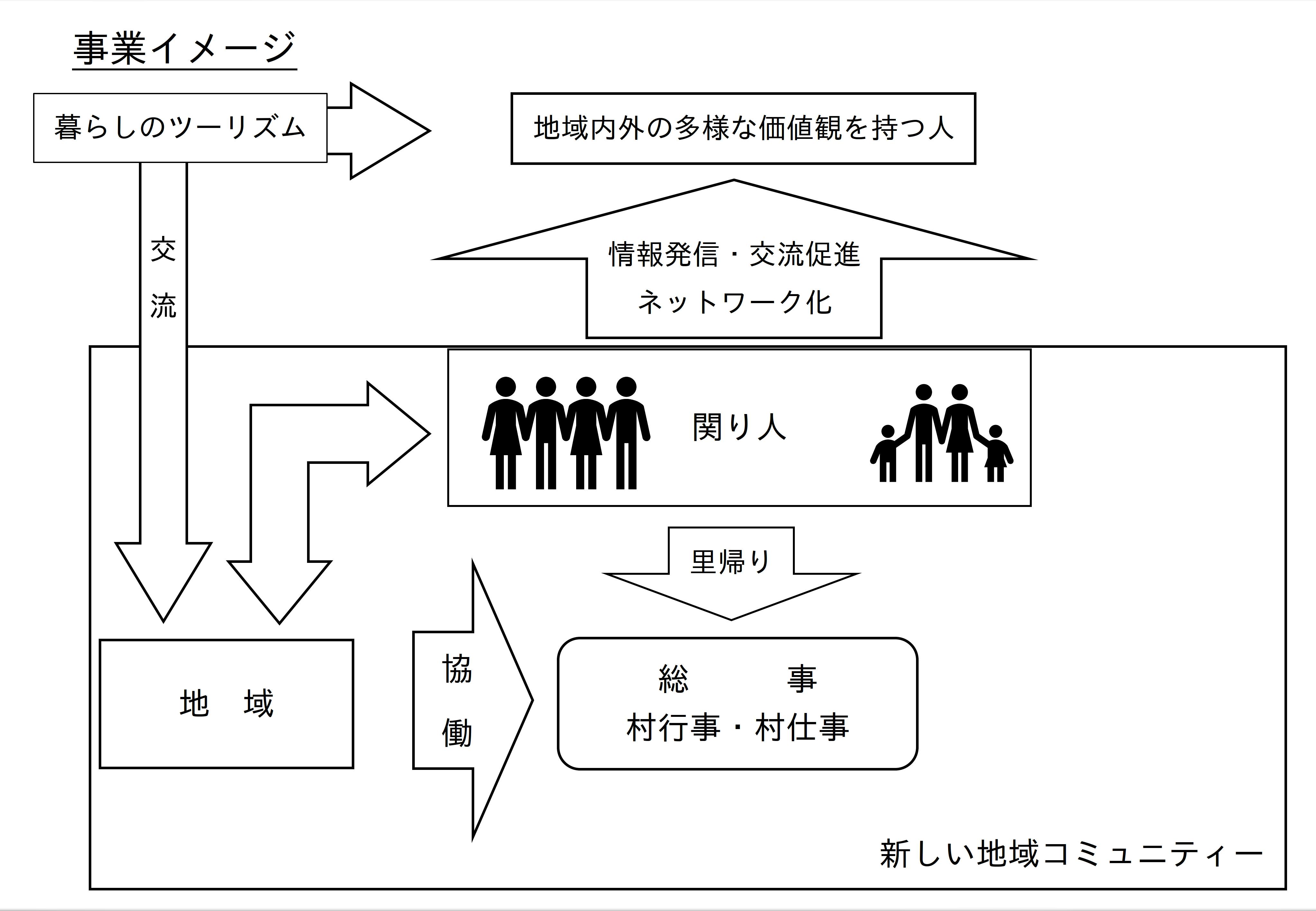 このプロジェクトは弊社事業である交流人口の増加を目標とした「暮らしのツーリズム 八頭若桜谷里山リトリート」や「ふるさとワーキングホリデー」などを通じつながりのできた地域外の住民が「関り人」になり、新しい形の地域コミュニティーを再構築することで、持続可能な地域再生を目的とします。