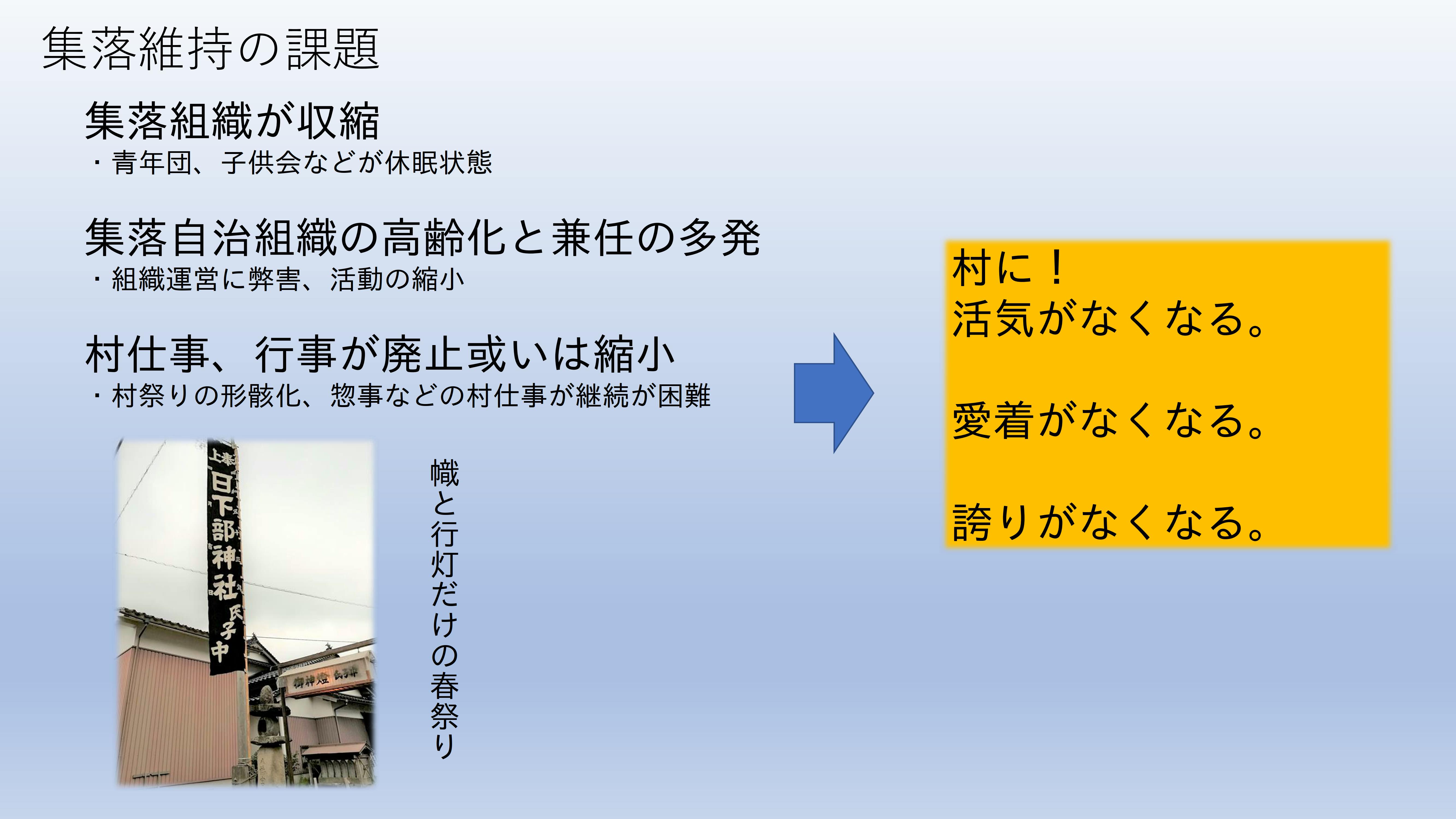 2019/10/13 14:54SATOGAERIプロジェクトを思い立った理由を簡単に説明します。(と言っても長文になります) そもそもSENROは八頭若桜谷にある古民家(伝統的建造物 概ね築100年以上)を活用し経済循環を伴ったコミュニティー再生・地域再生を目的にした事業に取り組んでいました。ところが地域を見回してみると古民家はたくさんあるのですが、コミュニティー再生をしようにも地域コミュニティーが風前の灯火状態で、祭りなどの地域行事は隔年開催或いは3年に一度に縮小され、中には祭り自体が担い手がなく軽トラに「榊神輿」(私たちの地域では榊を担ぎます)積んで、少数の男性が集落内を歩く形にまで簡素化されています。もちろんお囃子は人ではなく録音されたものを屋外スピーカーで流すだけです。 集落内の村仕事も担い手が減り、維持も大変になっています。その中で青年団、子供会などもどんどん縮小し、休眠状態になっている集落もあります。その中で地域内でコミュニティーを維持再生しようとしても、困難な状況を目の前にしどうしたものか?と考え込んでしまいました。 単に賑やかにするだけなら話題性のあるプレイヤーにお願いし、話題性のあるイベントなどを開催すればいいのですが、そうするとプレイヤーが主役になってしまうだけで、「そこで」「そのとき」「その人から」という私たちが考える地域再生の大切なコンセプトから外れてしまうように思います。 そして、地方の場合都市部と同じようなことを行っても必然性がなくなり、その地域特有の文化を包摂した形での新しい文化の創造ができなくなるので、地方での地域再生はやはりその地域特有の文化をもとにしたスキームが必要だと思います。そうするとその地域への思い入れが発生しそれがコミュニティー再生につながることになると思います。 そんな中、2018年にふるさとワーキングホリデー「とっとりワーホリ」事業の受入を行い参加してくださった都市部の方が集落行事や村仕事などに参加した結果、集落特に高齢者の方に喜んでいただき、ご近所に活気が出てきたことを経験し、移住定住の一歩手前の関係人口という形でのコミュニティー再生を考えました。あたらしいふるさとづくりを皆さんと一緒に実現することで毎年里帰りする場所を作ろうと! もっと見る