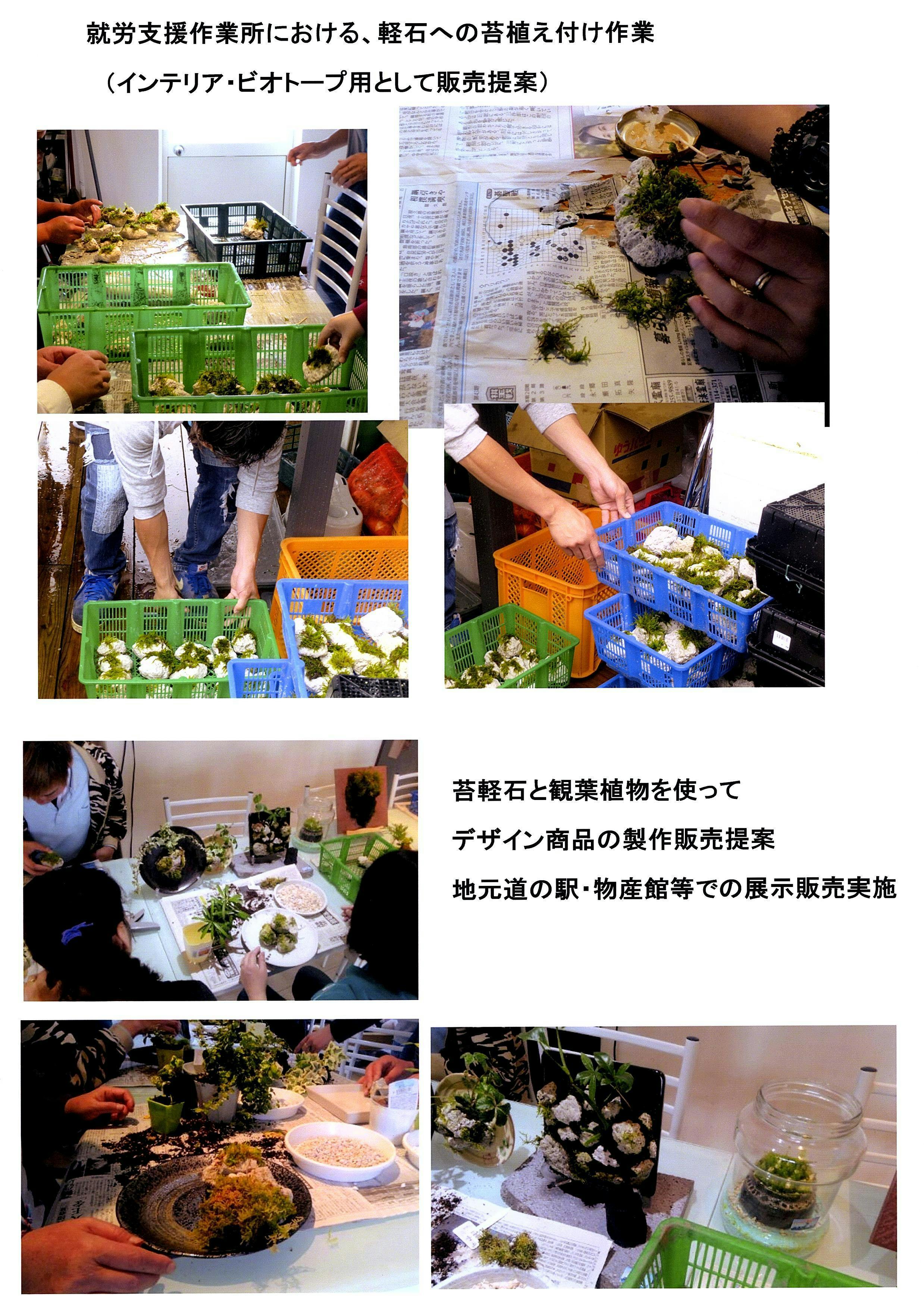 ・平成30年4月鹿児島県指宿市内の就労継続支援作業所にインテリアやビオトープなどに使用出来る苔石の作製を桜島軽石を利用して作る作業を提案~実施~販路営業