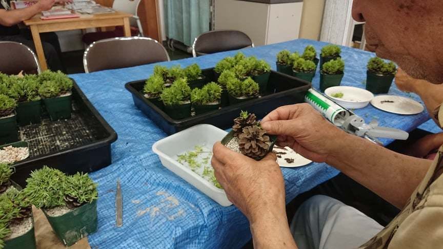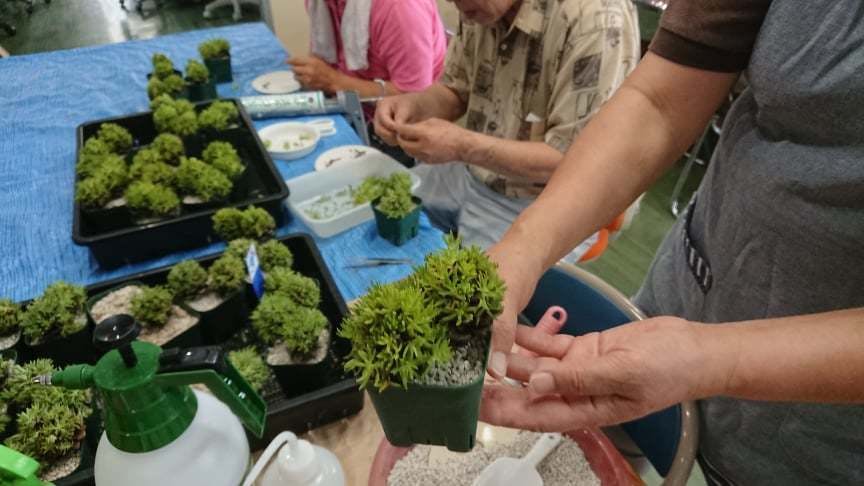 ・令和1年5月鹿児島市内の就労継続支援事業所に松ぼっくり採取~加工~マンネングサ栽培~デザイン~組み立て作業~培養~販売提案(作業指導実施)~販路営業