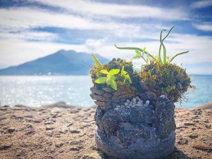 ・令和1年7月鹿児島県南九州市の就労継続支援事業所へ軽石の組み立てに拠るデザイン植木鉢の製造方法を提案~製造方法デザイン指導~植物の提供~栽培方法指導~販路営業