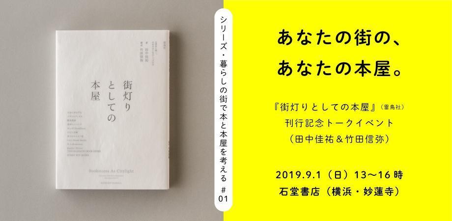 その記念すべき第1回として、先日7月末に『街灯りとしての本屋』(雷鳥社)を上梓されたライターの田中佳祐さんと、構成を担当された双子のライオン堂の店主・竹田信弥さんをお招きし、「あなたの街の、あなたの本屋。」と題してトークイベントを開催します。