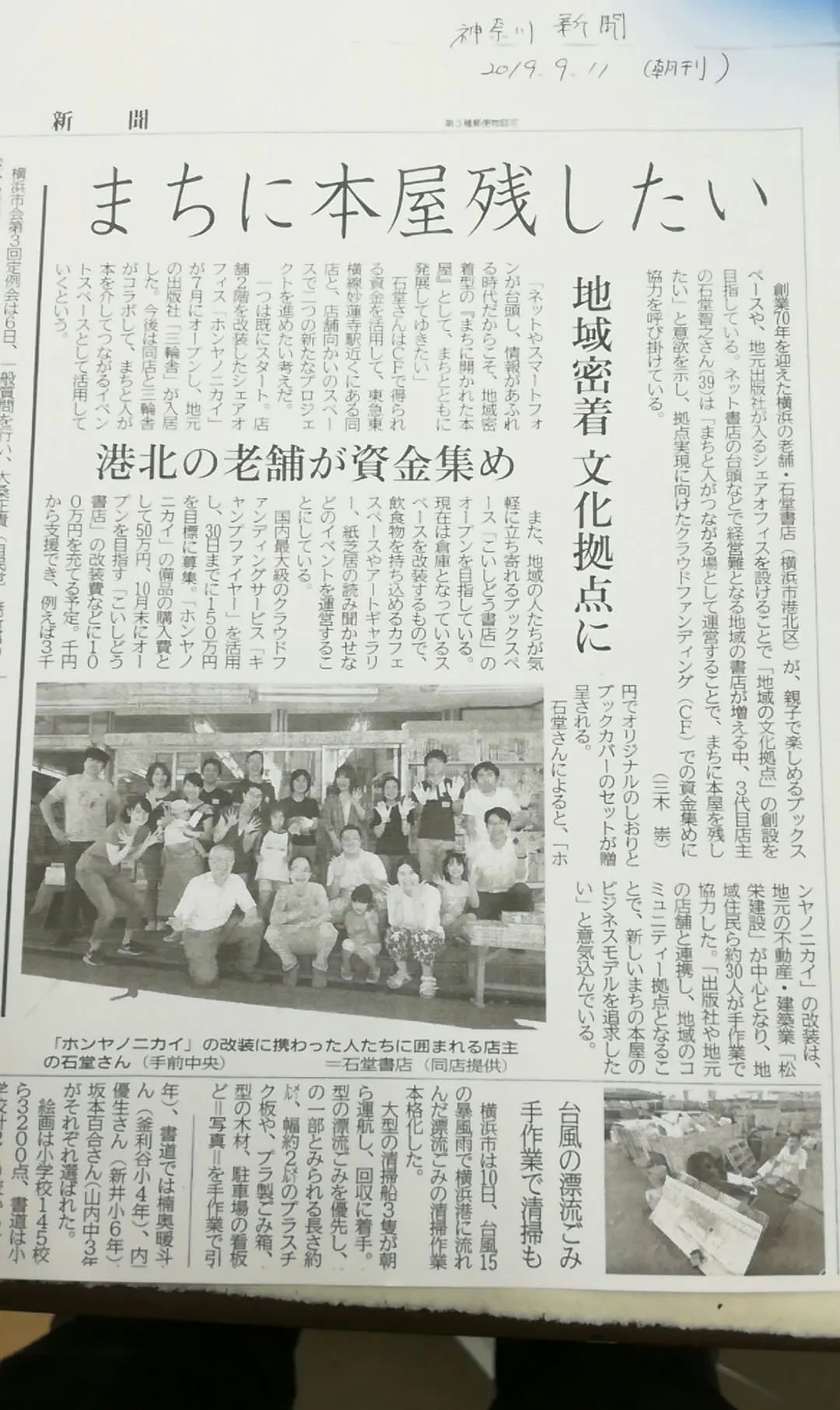神奈川新聞様に「まちの本屋リノベーションプロジェクト」の内容を記事にしていただきました。