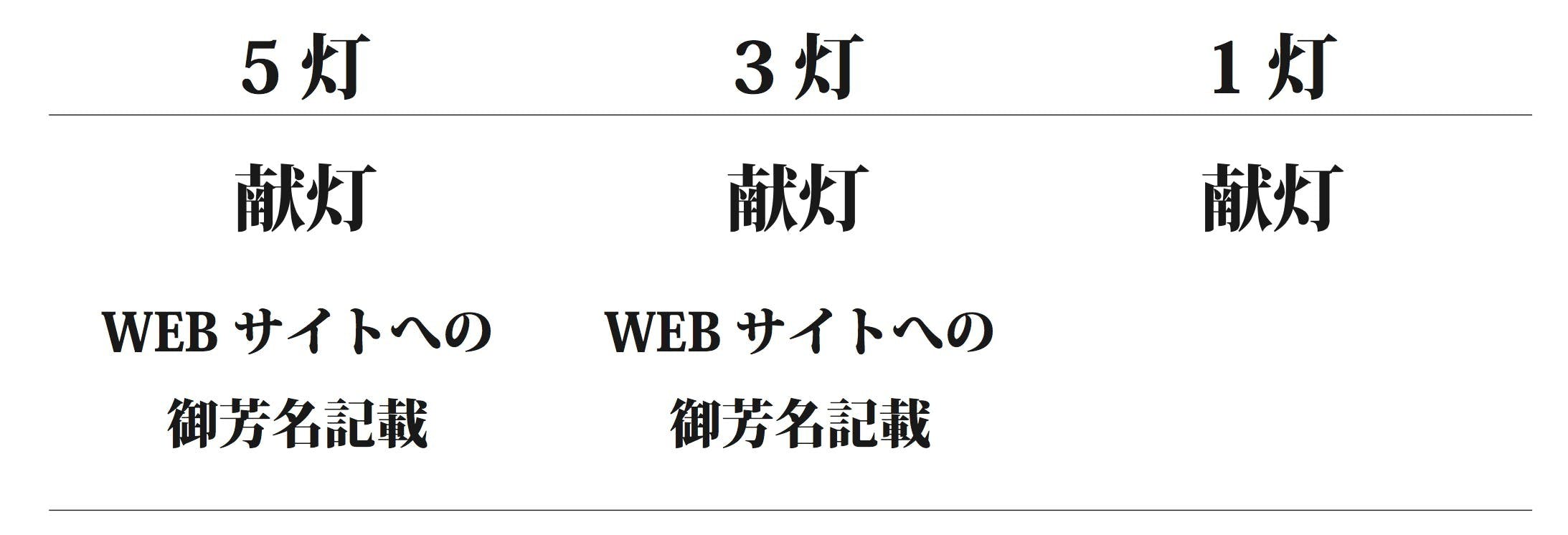 一、 オフィシャル WEB サイトへ文字もしくはロゴデータを掲載させていただきます。(3 灯以上ご献灯の方)