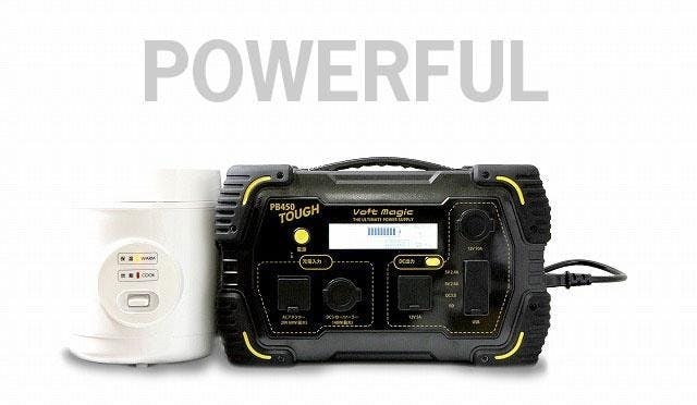 このたびご紹介するのは、小型、大容量、高出力のポータブル電源「ボルトマジックPB450タフ」です。ありがちな金属箱のイメージを払拭し、タフでかっこいいイメージのデザインに仕上げました。アウトドアでの利用や防災用としてご活用いただける商品だと確信しております。