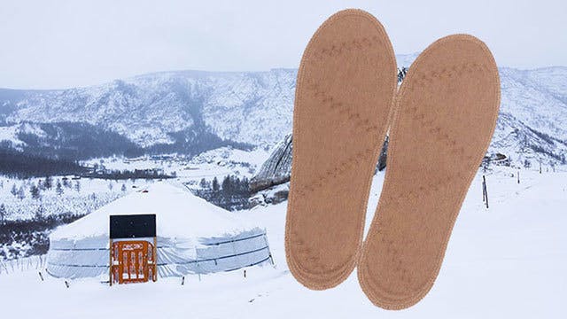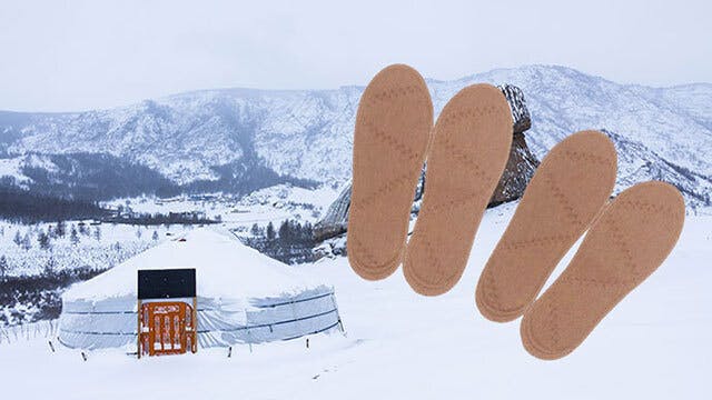 私たち「越冬屋」が取り扱っている「オーガニックスーパーホットマグマインソール」、通称「マグマインソール」は、極寒の国モンゴル産のふたこぶラクダと羊の毛を使った天然ウール100%なので、靴を履いた瞬間に暖かく、しかもその暖かさがずっと続くのに、ムレにくく臭いにくい、アウトドアシーンに最適の防寒インソールです。