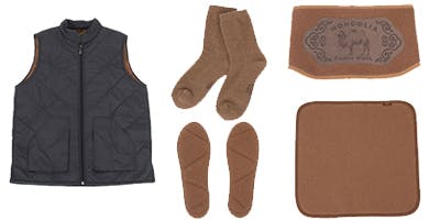 一般的には化学繊維を織り込むのが主流ですが、私たちはモンゴル産のふたこぶラクダと羊の素材の良さをそのまま実感していただきたく、100%にこだわりました。