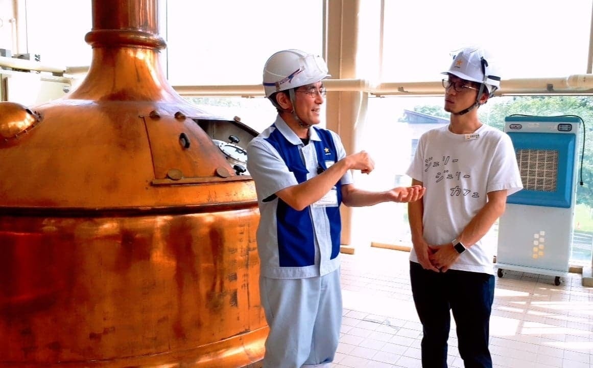 サッポロビールの工場にてビール造りのレクチャーを受ける白坂さん。