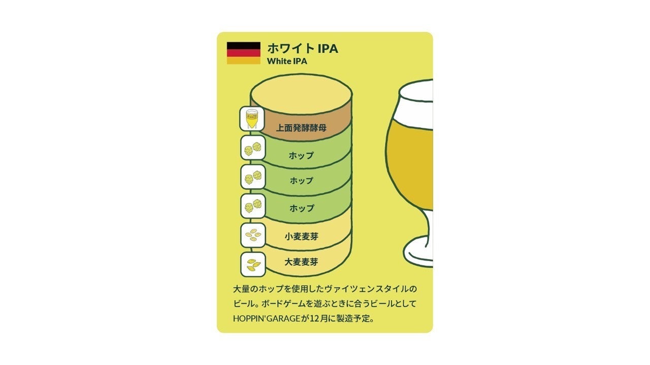 HOPPIN' GARAGEと白坂さんで開発中のボードゲームに合うイベント限定オリジナルビール「ボードゲームビール」。そのスタイルである「ホワイトIPA」の限定オリジナルカードです。
