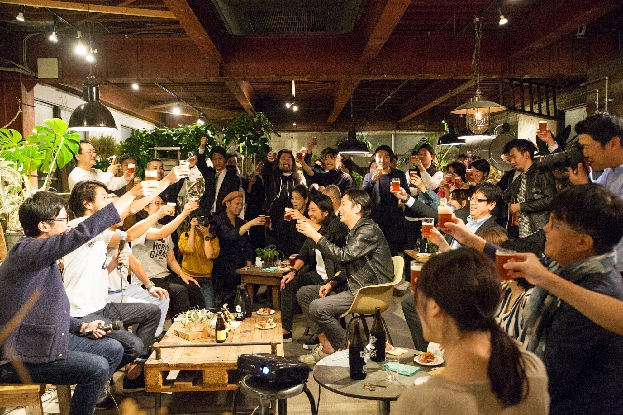 HOPPIN' GARAGEでは「できたらいいな。を、つくろう」をテーマに、お客様のアイディアから毎月オリジナルビールを製造し、お披露目イベントを開催、そのほかにもビールがテーマのイベントを自由に立上げ、参加者を募集できるC2Cプラットフォームを提供しております。