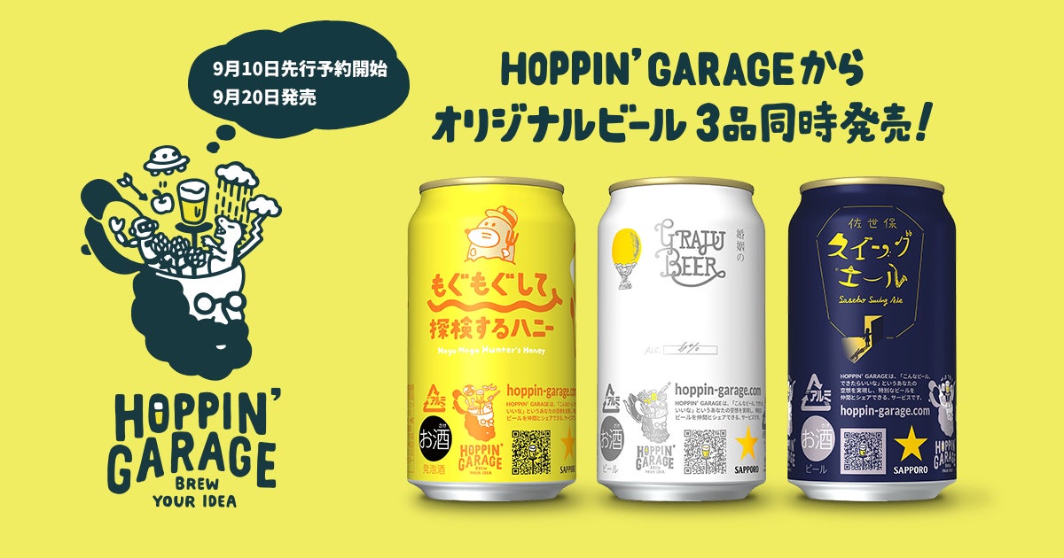 本日9月20日よりHOPPIN' GARAGEのオリジナルビール3種が発売開始いたしましたでの、ご紹介させてください!