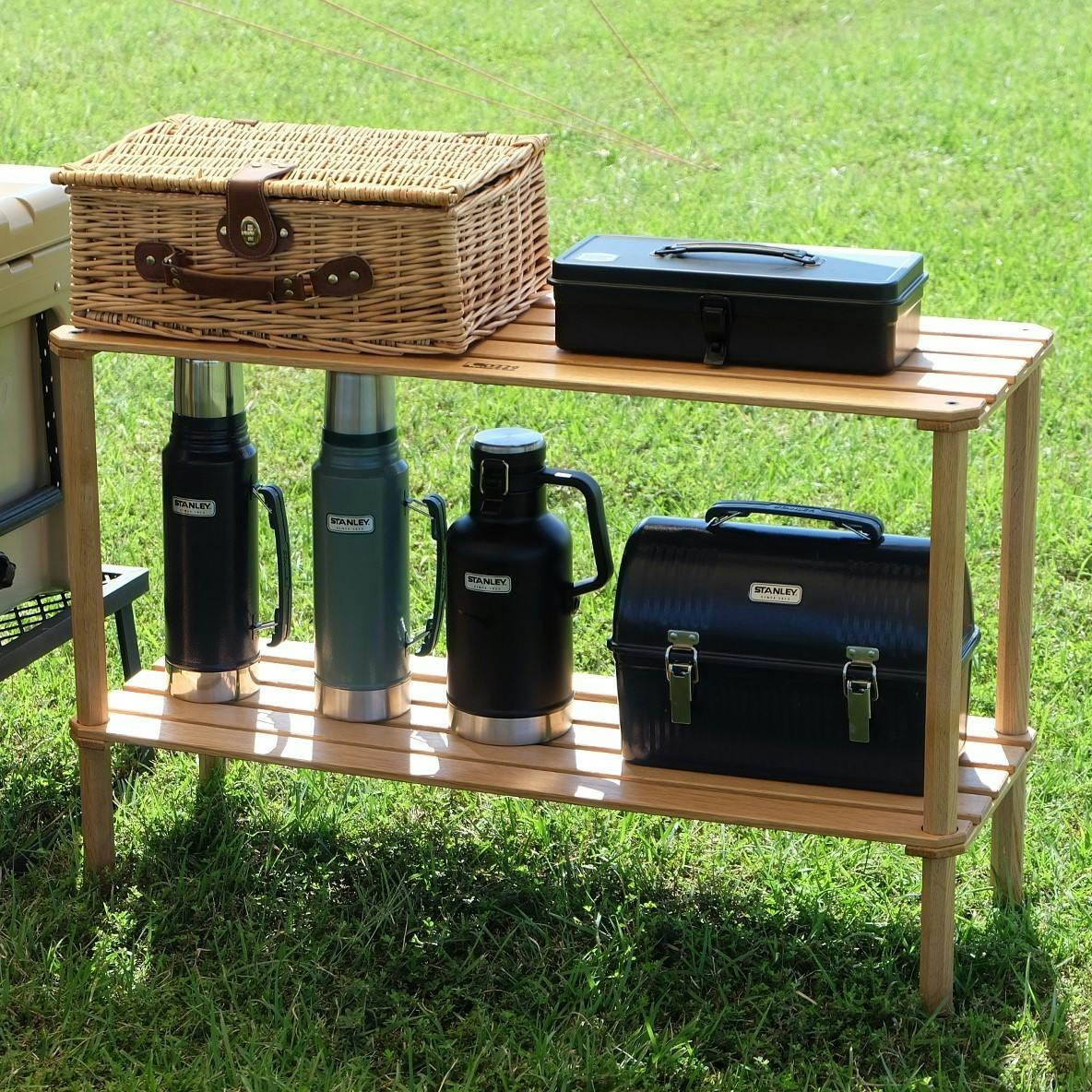 収納サイズからは想像できない程、大型のラックになります。幅が90㎝あるので食器から水筒まで収納することができます。1段目と2段目の間は40㎝となり、人気のスタンレーの1Lの水筒が収納できます。