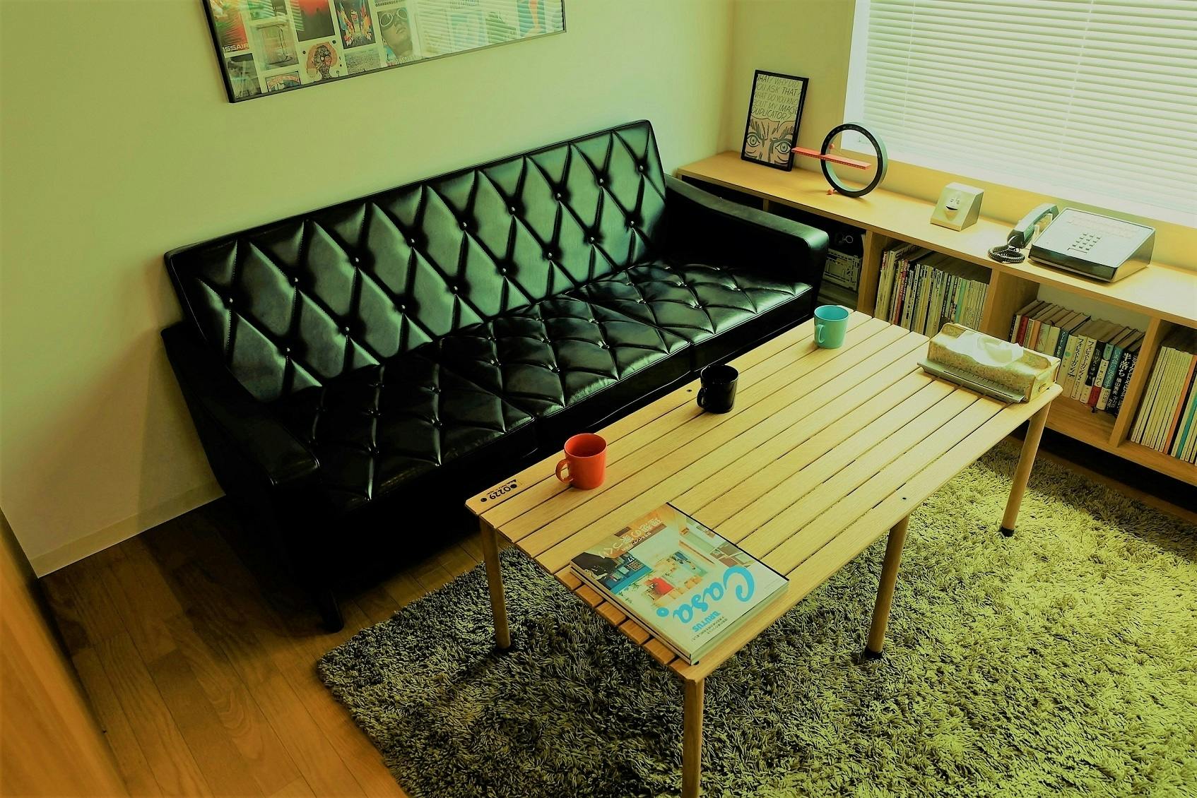 組立時の外観は流行に左右されないシンプルデザイン。収納時サイズにも拘り、組立時のサイズから想像がつかない程コンパクトになります。テーブル高さも45㎝となっているためローチェアやハイチェアはもちろんご自宅のソファとも相性抜群の高さになります。