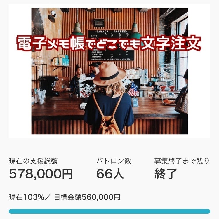2018年11月5日から2019年1月8日、『吃音のある人に、食べたいものを気軽に注文できる電子メモ帳を配布したい』のクラウドファンディングを行いました。